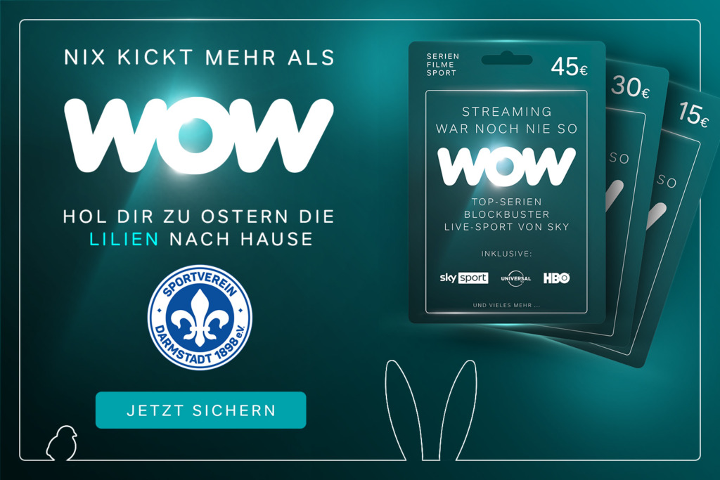 Freu dich dank der WOW-Geschenkkarten auf den Saisonendspurt des SV Darmstadt 98, die Samstagsspiele der Bundesliga, alle Spiele der 2. Bundesliga, Topspiele der Premier League sowie weitere Sport-, Serien- und Filmhighlights.