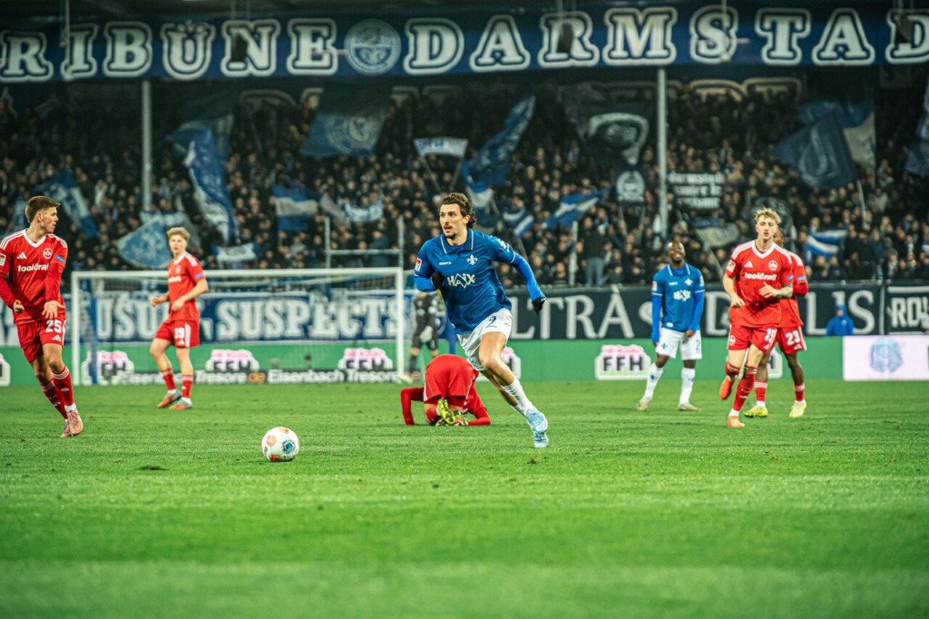 Darmstadt were clinical in front of goal, ruthlessly exploiting the space they were given. In the 75th minute, a counter-attack led to the 2-0: After a Nürnberg corner was cleared, Richter quickly launched the ball deep into the opposition’s half. There, Luca Marseiler won the footrace against his Justvan and calmly clipped the ball over the onrushing goalkeeper.