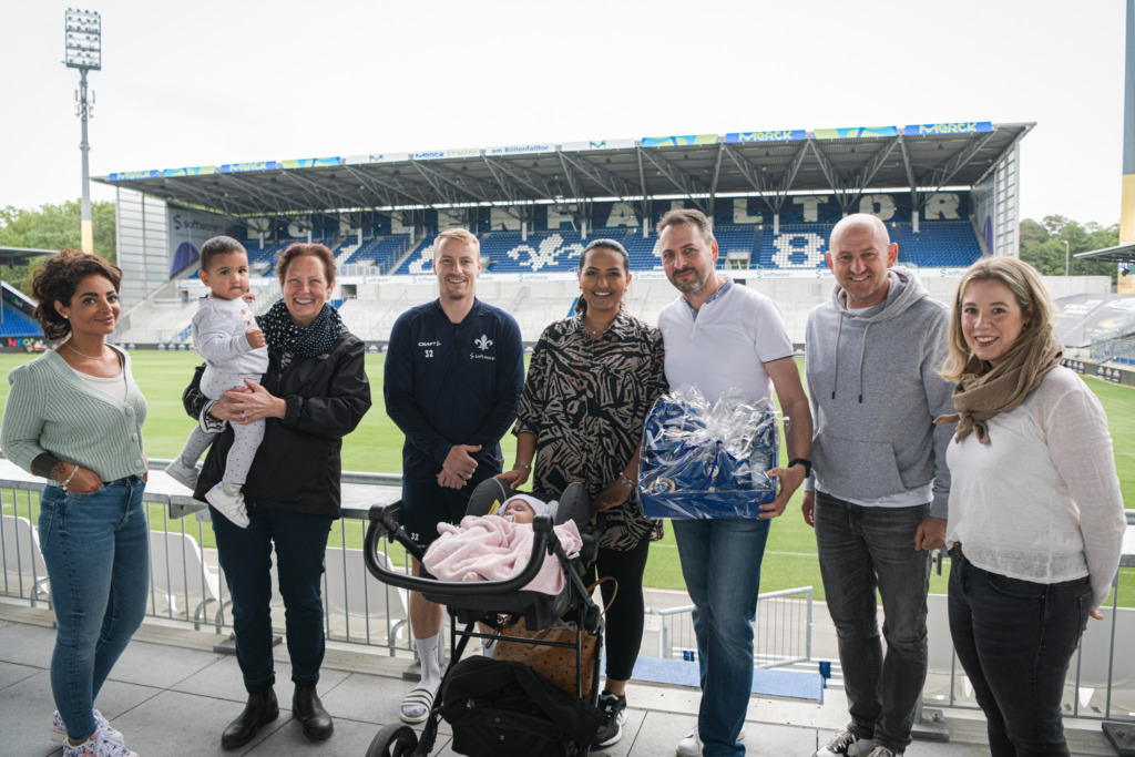 Seitdem „Kinder schützen – Familie fördern“ ins Leben gerufen wurde, steht der SV 98 diesem Darmstädter Modell, das junge Familien berät und unterstützt, als enger Kooperationspartner zur Seite. So wurden in den vergangenen 14 Jahren über 20.000 Willkommensgeschenke an die Neugeborenen und deren Familien überreicht. Über ein ganz besonderes Geschenk durfte sich in diesem Jahr Baby Meliha freuen: Im Januar 2023 erblickte sie als 98. Baby von „Kinder schützen – Familie fördern“ das Licht der Welt. Klar, dass sich Lilien-Cheftrainer Torsten Lieberknecht und Kapitän Fabian Holland daher die Zeit nahmen, Meliha und ihrer Familie gebührend zu gratulieren. Zuvor hatte auch schon Innenverteidiger Christoph Zimmermann per Videogrußbotschaft seine Glückwünsche ausgerichtet. Oberbürgermeister Jochen Partsch: „Dass der SV 98 sogar im Aufstiegskampf die Zeit findet durch den Cheftrainer und den Kapitän persönlich, das Projekt „Kinder schützen – Familien fördern“ zu unterstützen und zugleich die Familie zu würdigen, ist phänomenal und zeigt den Geist des Vereins, des Trainers und des gesamten Teams sowie die Verbundenheit mit unserer Stadt.“