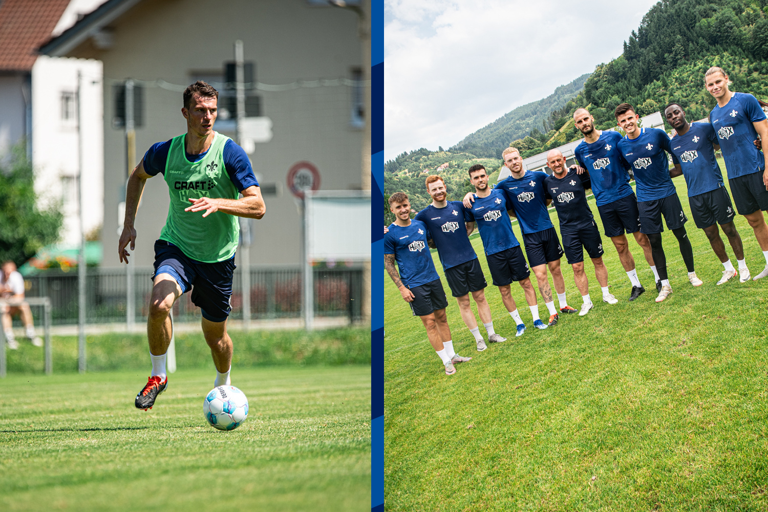 Die Profis um Neuzugang Paul Will und Abwehrmann Christoph Zimmermann gastieren bis Freitag (28.6.) in Lautenbach im Schwarzwald für ihr erstes von insgesamt zwei Trainingslagern in diesem Sommer. Am Mittwoch hatten die Journalisten die Möglichkeit, in einer virtuellen Medienrunde den beiden Lilien-Kickern ihre Fragen zu stellen. Zimmermann sprach unter anderem über die positive Stimmung: „Man merkt definitiv, dass eine Anfangseuphorie vorhanden ist. Wir haben einige Spieler abgegeben, einige kamen dazu, da merkt man eine gewisse Aufbruchsstimmung. Es ist wirklich schön zu spüren, dass jeder voller Tatendrang ist.“ Auch Paul Will, der im Sommer aus Dresden kam, bestätigt den Eindruck und spricht über die intensiven ersten Tage: „Es ist wie in jedem Trainingslager sehr intensiv – vor allem in diesem, wo der Fokus besonders auf die Athletik gelegt wird. Dennoch denke ich, dass der Spaß trotzdem nicht zu kurz kommt, daher sind bisher alle Mann rundherum zufrieden.“ Mit drei Einheiten pro Tag kommen die 98er bereits zu dieser frühen Zeit der Vorbereitung ordentlich ins Schwitzen, laut Zimmermann nehme jeder diese anstrengende Anfangszeit aber gut an: „Wir sind jetzt schon relativ früh in die Vollen gegangen, haben viele Einheiten am Tag.“ Ziel der Verantwortlichen sei es, bereits früh einen guten Grundstein zu legen.