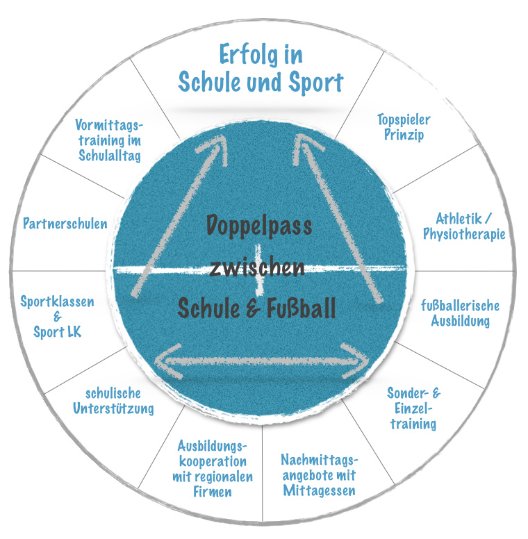 Aus diesem Grund ist die Koordinierung der sportlichen Karriereförderung mit der bestmöglichen Schul- und Berufsausbildung eine wichtige Aufgabe für unser Nachwuchsleistungszentrum. Ziel ist eine systematische Verbindung aus intensivem Fußballtraining und guter schulischer Ausbildung. Das NLZ möchte daher einen aktiven Beitrag in der schulischen Begleitung seiner Spieler leisten. Den Spielern kommen zur Bewältigung der Doppelbelastung von Schule und Leistungssport umfangreiche Hilfen zu, so dass sie eine gezielte und optimale sportliche Ausbildung erhalten und gleichzeitig die angestrebten Bildungsabschlüsse erreichen können.
