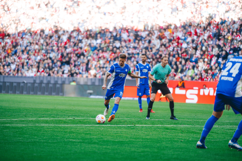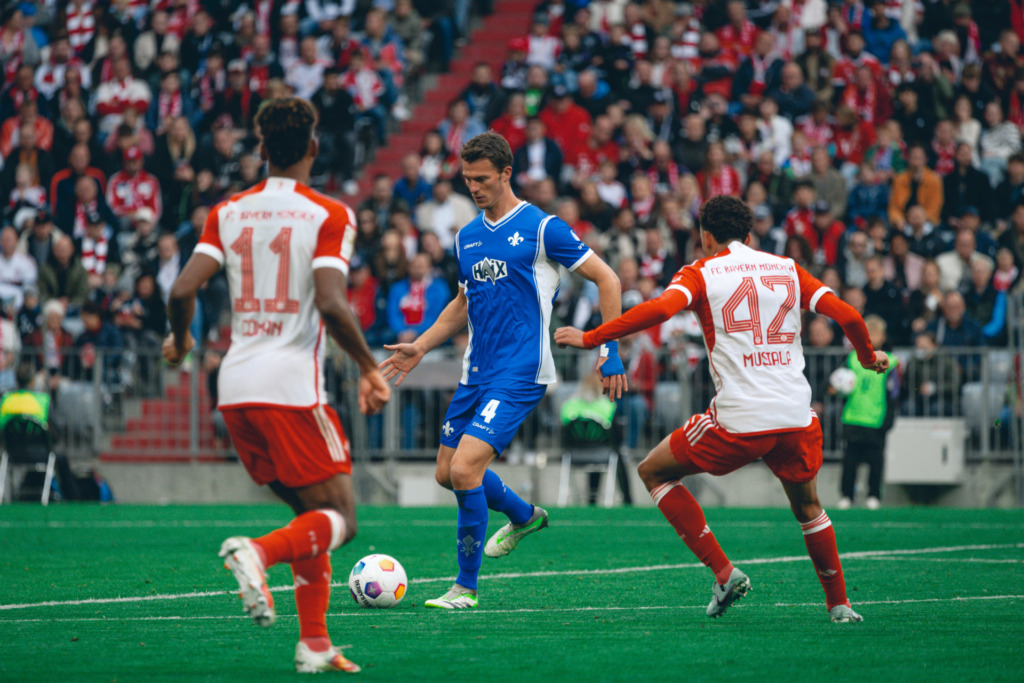 Auch in Gleichzahl spielten die Lilien weiter mutig und erarbeiteten sich so Gelegenheiten: Erst prüfte Tim Skarke Keeper Neuer aus spitzem Winkel (27.), dann versuchte es Mehlem nach einer Kopfballablage, zielte aber deutlich über den Kasten (28.). Insgesamt gab es jetzt Chancen auf beiden Seiten: So vergab Coman in Bedrängnis (30.), dann verzog Luca Pfeiffer im Gegenzug (32.).