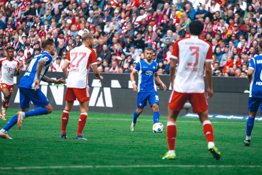 Insgesamt waren die Lilien in Unterzahl jetzt kaum noch in der Partie und mussten in der 60. Spielminute den dritten Gegentreffer hinnehmen: Musiala traf nach einem Freistoß. Auch jetzt gaben die Darmstädter sich nicht auf, doch die Tore fielen weiter auf der anderen Seite: Sane erhöhte auf 4:0 (64.). In der 69. Minute traf Kane mit einem sehenswerten Distanzschuss. Bitter, da zunächst im Bayern-Strafraum ein Ball von Skarke mit dem Arm abgewehrt wurde. Zwei Minuten später machte Müller mit dem 6:0 das halbe Dutzend für die Hausherren voll (71.).