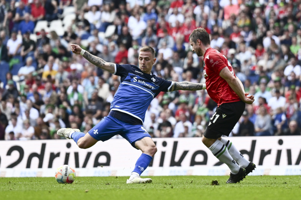 Erst ab der 20. Spielminute fanden die Darmstädter etwas besser in die Partie und kamen so nach 27 Minuten zur ersten Chance: Nach einer Flanke von Filip Stojilkovic rutschte der Ball bis zu Braydon Manu durch, dessen Abschluss flog aber deutlich am Ziel vorbei. Und trotzdem mussten die 98er ein weiteres Gegentor hinnehmen: Nach einem schnell ausgeführten Freistoß kam Teuchert aus spitzem Winkel zum Abschluss und traf zum 2:0 (32.).