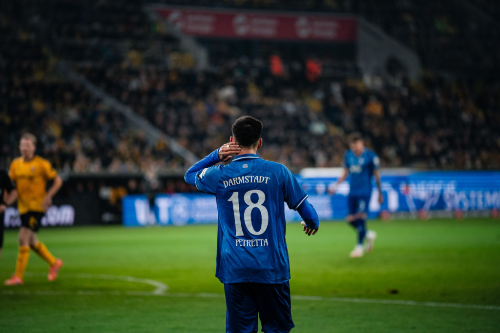 More than 30,000 fans packed the Rudolf-Harbig-Stadion, creating an impressive atmosphere under the floodlights – pure football romance. The setting for Darmstadt's away match against Dynamo Dresden was truly special. Two teams with a playful and attacking approach faced off. For 42 minutes, these ingredients combined to create an entertaining, tactically sophisticated, and intense duel. Until a referee's decision decisively influenced the outcome. We look back on an emotional evening in Dresden.