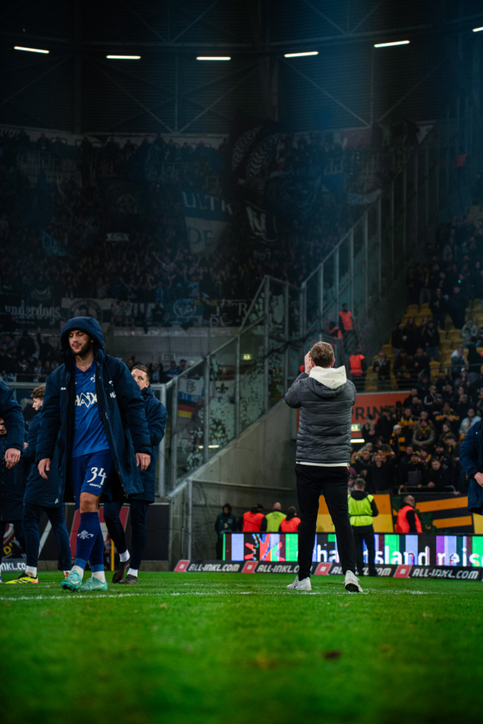 While Darmstadt certainly didn’t dominate the hosts, they allowed the technically gifted Dynamo Dresden side no real opportunities, repeatedly launching counter-attacks and creating the two chances Kohfeldt had mentioned. Added to this was the long-term plan the team from southern Hesse was pursuing that evening, a plan Kohfeldt felt his team was on the right track: „I had the feeling that if Dynamo’s energy flagged at any point, we would get even better chances.“