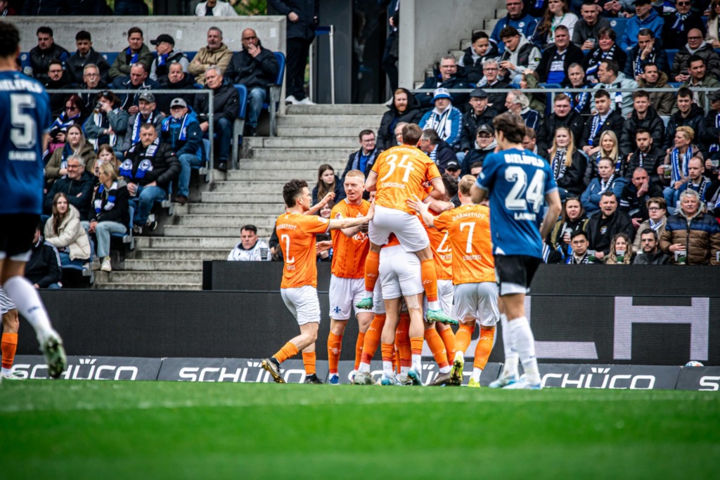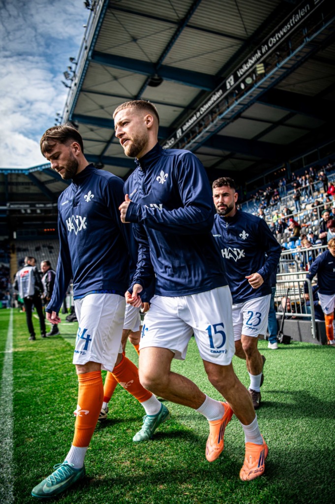 The hosts from East Westphalia started the match with high pressure, trying to push the game into the South Hessians‘ half early on. However, it was Darmstadt who created the first dangerous chance: Killian Corredor cut inside from the wing and curled a shot towards the far corner, but Kersken in the Bielefeld goal made a brilliant save to deny him on 4 minutes.