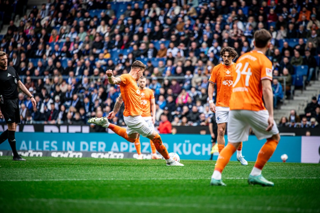 Just two minutes later, Darmstadt took the lead. After a free-kick routine, Fraser Hornby laid the ball off for Matej Maglica. The centre-back didn’t hesitate and unleashed a powerful shot at over 120 km/h to give Darmstadt a 1-0 lead.
