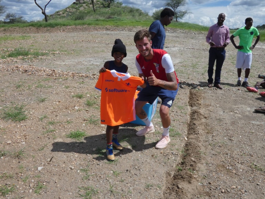 Auf ihrer Spendentour war die Organisation zu Gast in Okahandja bei der dortigen Fussball Academy. 20 Kinder konnten sich über Äpfel, Sandwiches, Lilien Trikots, Bälle sowie eine Trainingseinheit mit Coach Tony freuen.
