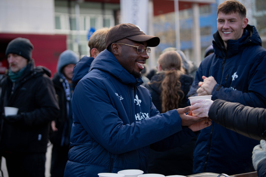 Lilien-Profis unterstützen die Essenausgabe an Obdachlose und Bedürftige