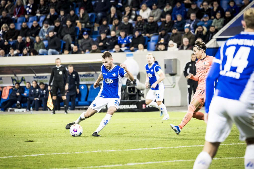 Das Heimspiel gegen den VfL Bochum begannen die Lilien mit einigen guten Offensivaktionen. Immer wieder kam Tim Skarke zum Abschluss: In der achten Spielminute versuchte er es im Anschluss an eine Ecke direkt, der abgefälschte Schuss flog aber am Kasten vorbei. Eine Minute später die nächste Direktabnahme der Nummer 27: Der Ball klatschte an den Pfosten, sprang Keeper Riemann an den Kopf und trudelte von dort ins Aus (9.). Pech für die Lilien.