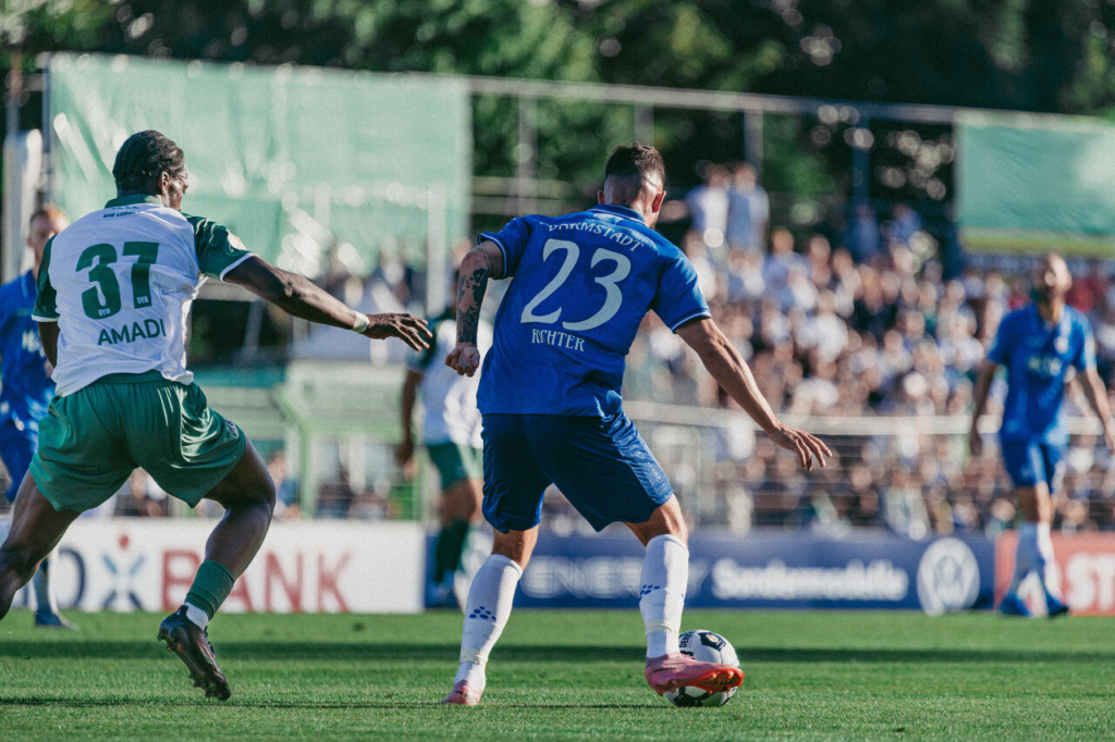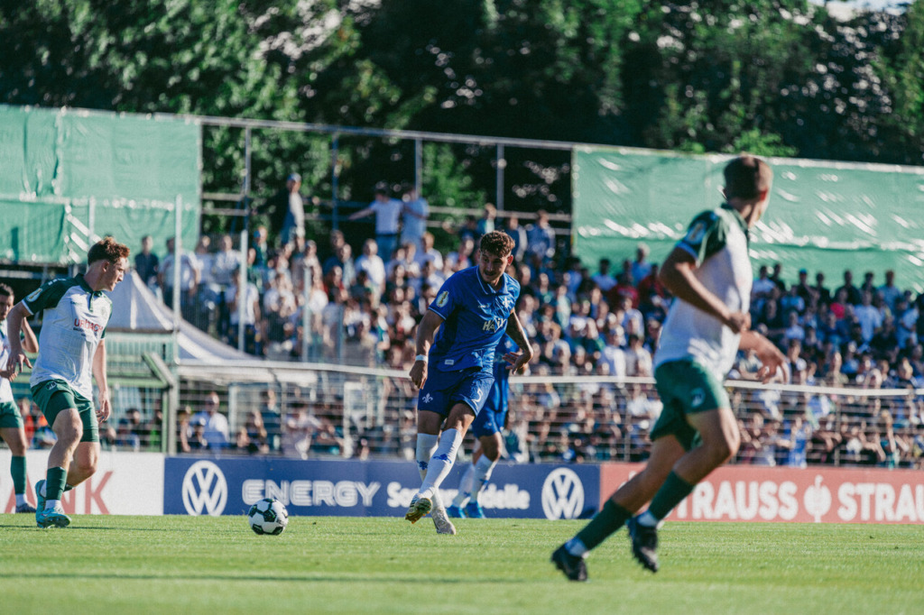 In the DFB-Pokal match against VfB Lübeck, the Lilies had their first good opportunity after just four minutes: Luca Marseiler shot from the right of the penalty area, but the goalkeeper saved it. The hosts were by no means passive in the opening stages and had shots of their own in the 7th and 10th minutes, which Marcel Schuhen, however, easily saved.