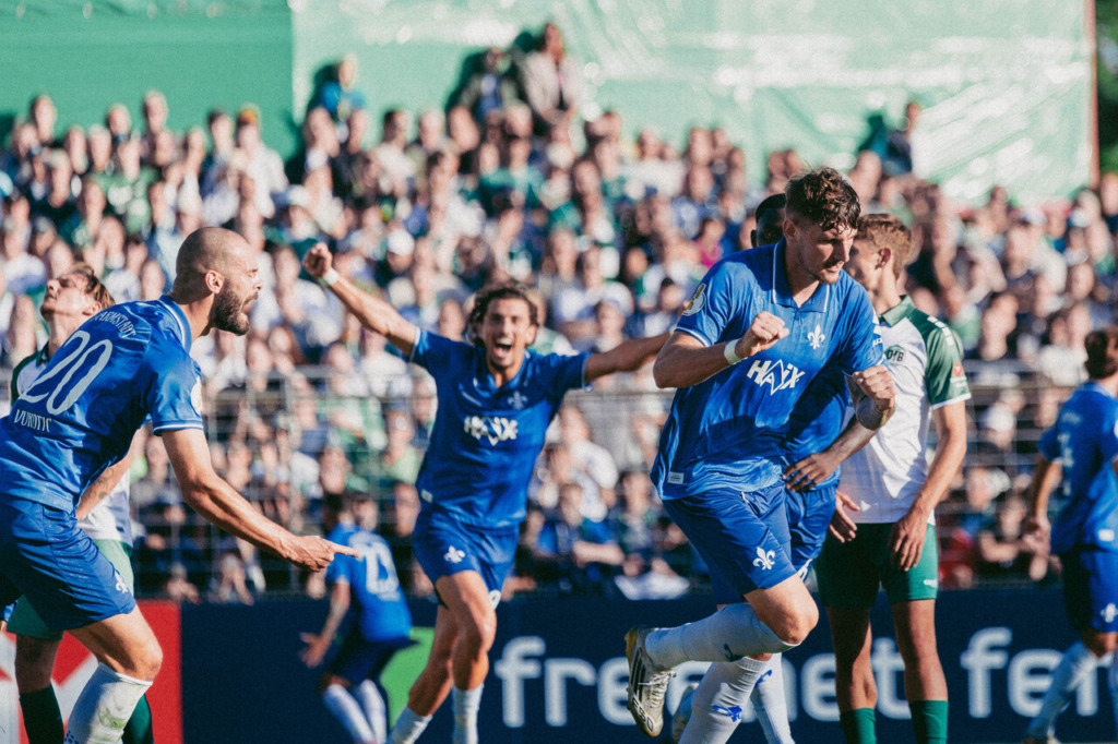 As the game progressed, the Lilies increasingly established themselves in the opposing half and dominated the game. Lübeck, however, defended with discipline, closing down the spaces and allowing few breakthroughs. As a result, the visitors‘ apparent advantage remained devoid of any real scoring opportunities for a long time. It wasn’t until just over half an hour had passed that the 98ers came close to taking the lead when Marco Richter, following a cross from Marseiler, saw his effort saved by Diestel in the Lübeck goal on 32 minutes. Two minutes later, a set piece gave the South Hesse side the lead: After a corner, the home side couldn’t clear the ball, and Matej Maglica pushed the ball over the line from close range. However, Lübeck remained aggressive and looked for opportunities, especially on the counterattack.