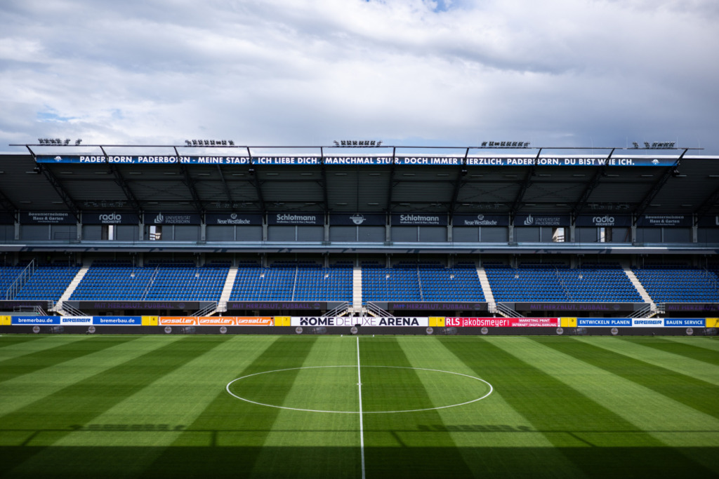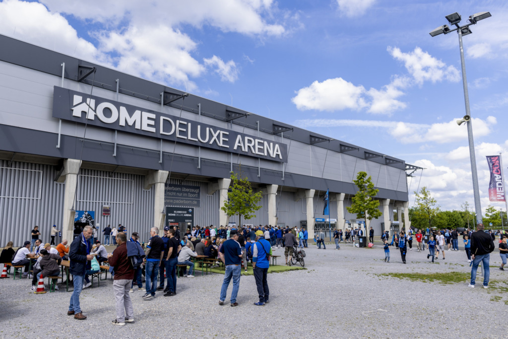 Kylian Mbappé and Antoine Griezmann, Olivier Giroud and Kingsley Coman and and and… But what does the French national team have to do with SC Paderborn? The Équipe Tricolore resided in East Westphalia during the 2024 European Championships. The French had their base camp in Bad Lippspringe, but training took place in the SCP’s home stadium – the Home Deluxe Arena. The East Westphalia Arena, which opened in 2008, offers space for a total of 15,000 spectators. The Lilies were last guests here in autumn 2022. And since then something has happened in the Paderborn home stadium. Finally, at the beginning of 2024, the SCP opened the new upper tier, which offers additional seats for around 2,200 fans. However, nothing has changed in terms of overall capacity, as standing room has been reduced at the same time.