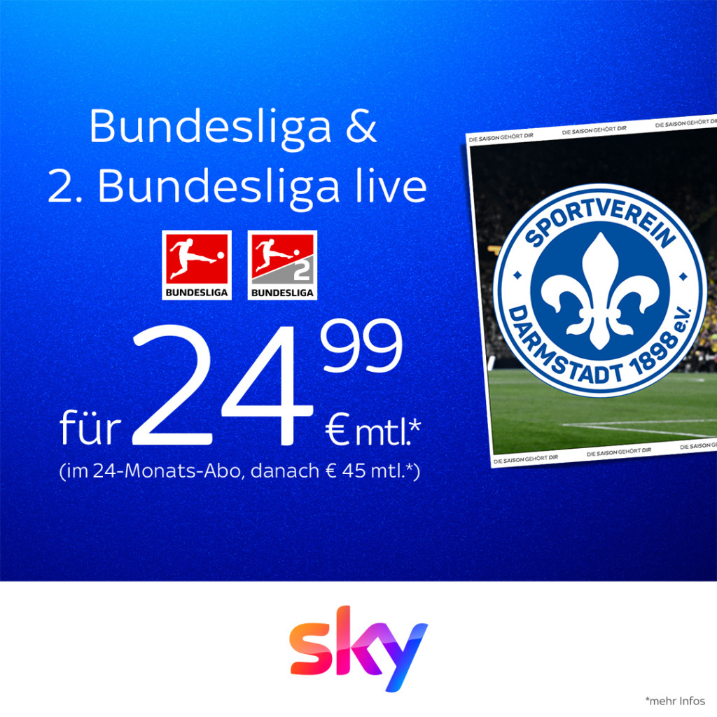The match between SV Darmstadt 98 and 1. FC Kaiserslautern will be broadcast by the pay-TV channel Sky. Preliminary coverage begins at 1pm. Hannes Herrmann will provide commentary.