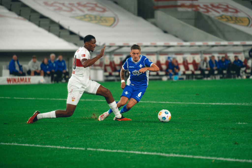 Von Beginn an waren die Hausherren tonangebend und setzten die Defensive des SV 98 unter Druck. Nichtsdestotrotz ging Darmstadt nach 17 Minuten in Führung. Nach einem scharfen Ball von Skarke grätschte Zagadou das Leder ins eigene Netz. Die Lilien-Führung sollte aber nicht lange Bestand haben. Fünf Minuten später glich Millot mit einem Schuss ins linke Eck aus. Der SVD ließ dann zwar wenig zu und kam zu etwas mehr Aktionen im letzten Drittel, doch eiskalte Schwaben gingen mit ihrer zweiten guten Aktion durch Top-Torjäger Guirassy in Führung.