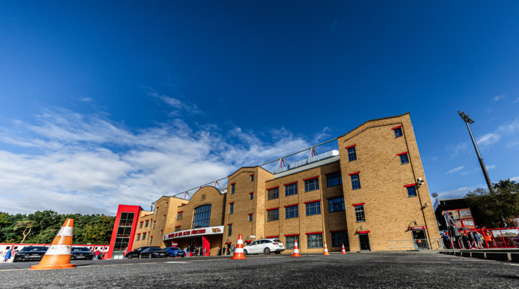 Am Rande der Wuhlheide, nahe dem Berliner Stadtteil Köpenick, steht das Stadion An der alten Försterei. In diesem geschichtsträchtigen Schmuckkästchen ist der 1. FC Union Berlin zuhause. Nach der Heidenheimer Voith-Arena und unserem Merck-Stadion am Böllenfalltor ist die Alte Försterei mit 22.012 Plätzen das drittkleinste Stadion der Bundesliga. Allerdings kann die Spielstätte durch 18.395 Stehplätze zu einem wahren Hexenkessel werden. Außer der Haupttribüne gibt es bei den Eisernen dementsprechend nur Stehtribünen. Die einzigartige Stimmung und die über hundertjährige Historie verleihen der Alten Försterei ihren unverwechselbaren Charme und Charakter. Ihren Namen hat sie durch das benachbarte Forsthaus bekommen, in welchem sich aktuell die Geschäftsstelle des Vereins befindet.