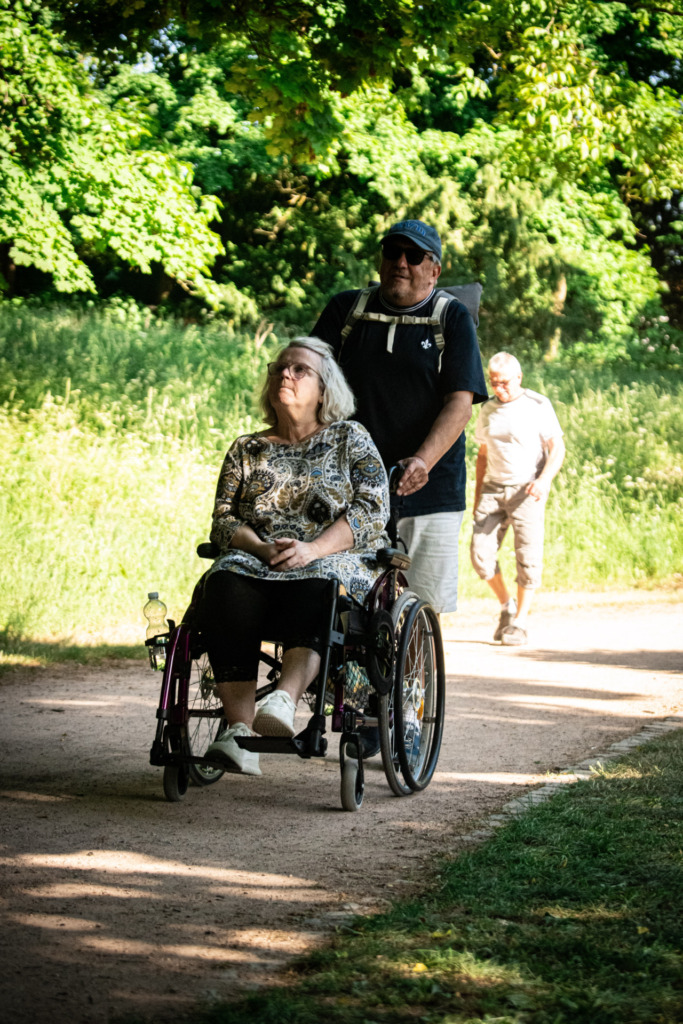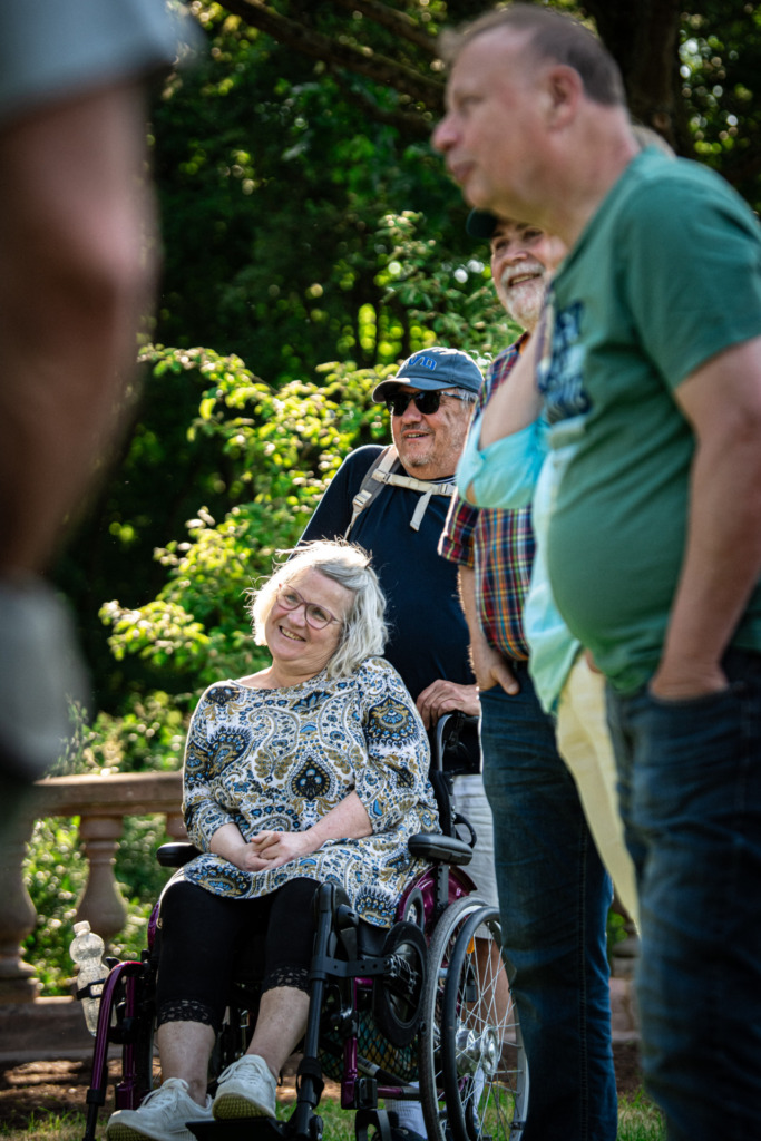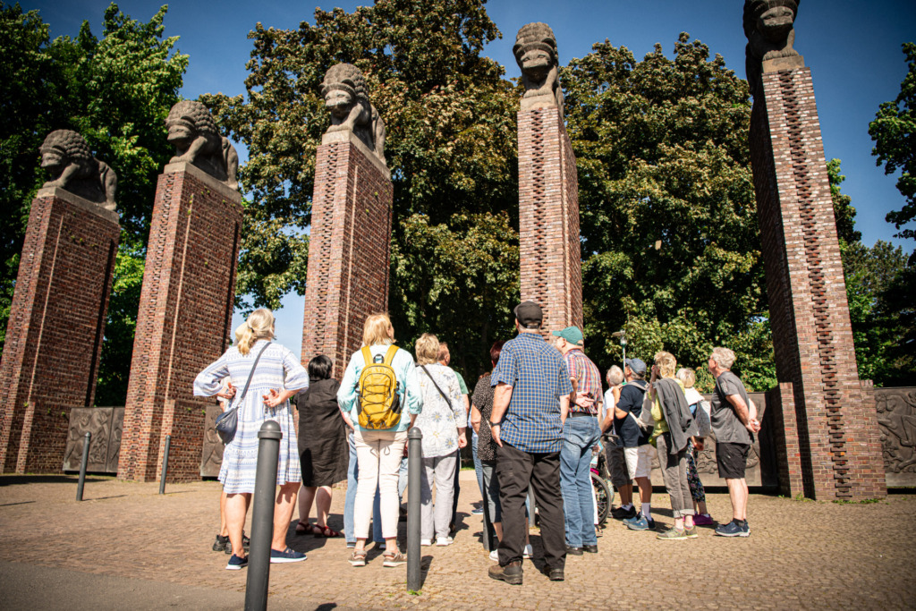 Am Anfang stehen mehrere steinerne Löwen. Träge blicken sie in den Tag, als hätten sie schon zu viele davon erlebt. Hier am Löwentor beginnt der Spaziergang der SilberLilien. Die Gruppe ist gut gelaunt, es wird geredet, gelacht und gescherzt – man kennt sich eben. Und wer neu ist, wird es in wenigen Minuten nicht mehr sein. Chris und Bernd sind schon bereit, sie haben den Ausflug organisiert, wie so viele andere in den vergangenen Monaten.