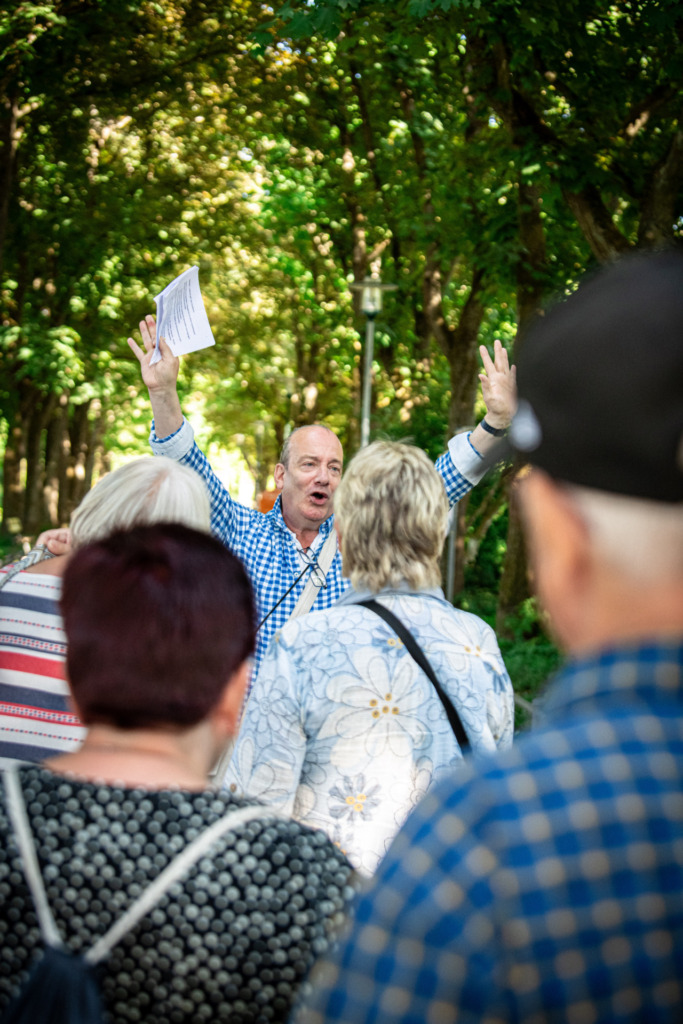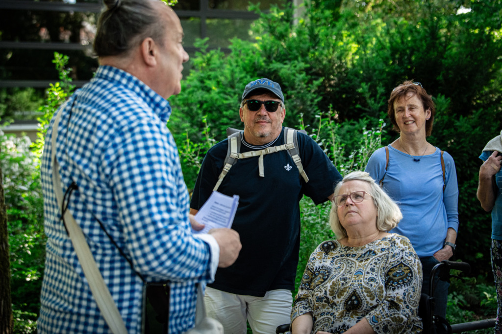 Der Park ist mittlerweile ein fest gewachsener Organismus. Manche Bäume scheinen sich in Pose zu werfen, andere ducken sich fast schon schüchtern ins Gebüsch. Ein Ast knackt, jemand bleibt stehen. „Hier war doch mal ein Palais, oder?“ – die Frage wird von einem leicht ironischen Seitenblick begleitet. Die Antwort darauf gibt es von Stadtführer Matthias Lohhammer. Locker, kompetent, mit erhobenem Zeigefinger und immer einem passenden Spruch auf den Lippen. Tatsächlich erinnern nur noch der Standort und das übrig gebliebene Pförtnerhäuschen an das historische Gebäude, das im Zweiten Weltkrieg zerstört wurde.