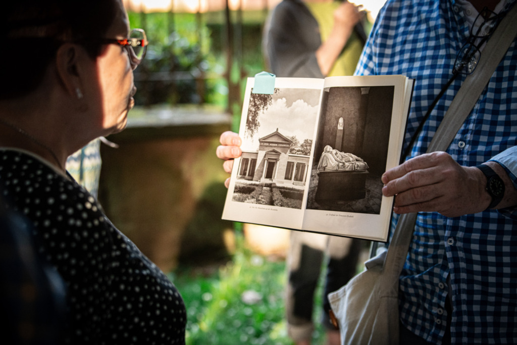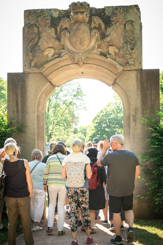 Zum Abschluss der Tour, die spontan von 90 auf 120 Minuten verlängert wurde, um den Park noch genauer erkunden zu können, führte der Weg an den Grabstätten der ehemaligen Großherzöge vorbei. Hier wurde es ruhiger, viele hielten inne, andere ließen ihre Blicke schweifen. Bis auf die Stimme des Tour-Guides Matthias und Vogelgezwitscher herrschte andächtige Stille.