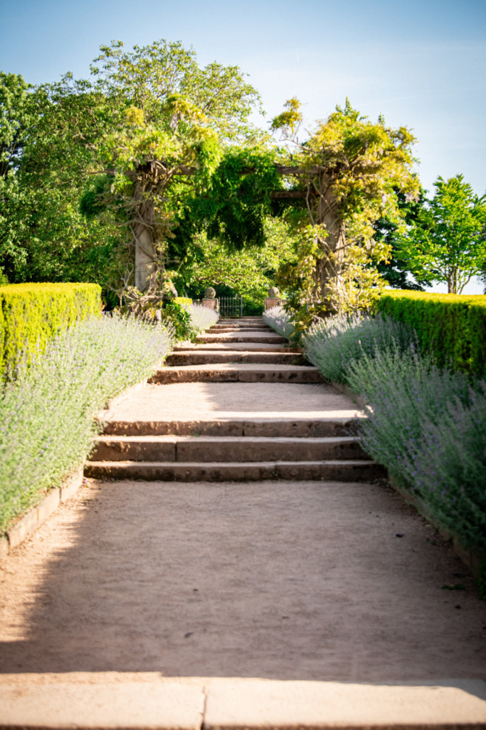 Die Rosenhöhe zeigt sich mitten im Frühling noch etwas zurückhaltend. Die Rosen wirken schüchtern, noch ist nicht ihre Zeit zum Blühen gekommen. Das fällt aber kaum auf. Zu viele andere Dinge ziehen die Aufmerksamkeit auf sich: Eine wunderschöne Allee umgeben von vielen Apfelbäumen, die im Wind hin- und herwehen mit einem abgewetzten Weg, den wohl schon viele Generationen unter den Sohlen hatten. Versteckte Insektenpunkte, die zahlreichen kleinen Lebewesen ein Zuhause bieten. Ein Drittel der historischen Bauwerke im Park existiert heute zwar nicht mehr, doch wer aufmerksam durch die Anlage geht, entdeckt überall Spuren der Vergangenheit: alte Fundamente, unscheinbare Treppenstufen oder auch ein altes Teehäuschen.