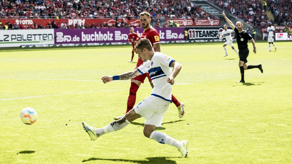 Insgesamt zeigte sich die Partie aber ohne das ganz große Tempo und jetzt und mit eher weniger Abschlüssen auf beiden Seiten. Nach etwas mehr als 20 Minuten setzte sich Braydon Manu auf der Außenbahn durch, doch Phillip Tietz wurde in der Mitte gerade noch am Abschluss gehindert (21.). Zwei Minuten später musste dann auch wieder Schuhen eingreifen und verhinderte im Eins-gegen-Eins einen Treffer von Lauterns Hercher – die bisher größte Chance im Spiel (23.).