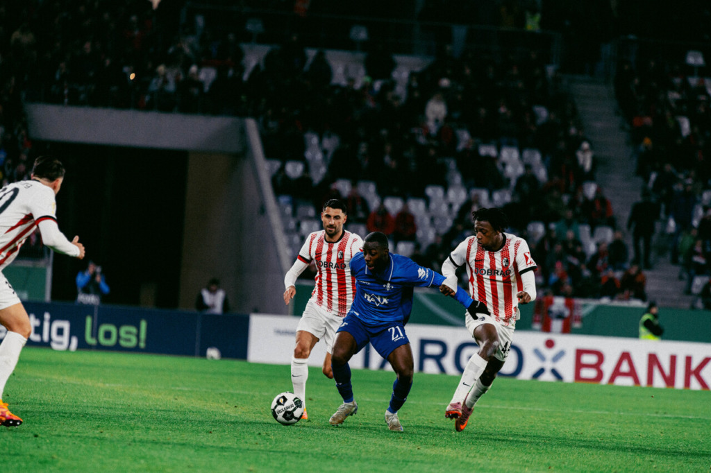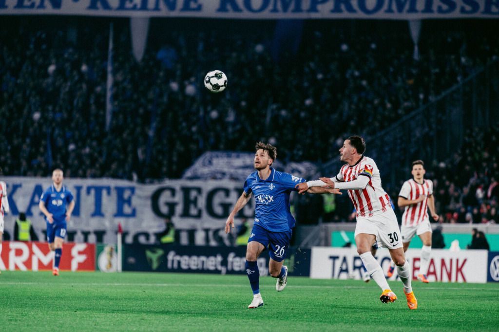 Darmstadt started the match against Bundesliga side Freiburg with a well-organised defence, while the home team sought to control the game early on. Darmstadt’s attack initially relied primarily on quick counter-attacks. The visitors‘ defence remained solid for long stretches and initially conceded few clear-cut chances. Freiburg’s first dangerous attack didn’t come until the 12th minute when Grifo got a shot away, but it was decisively blocked by Patric Pfeiffer.