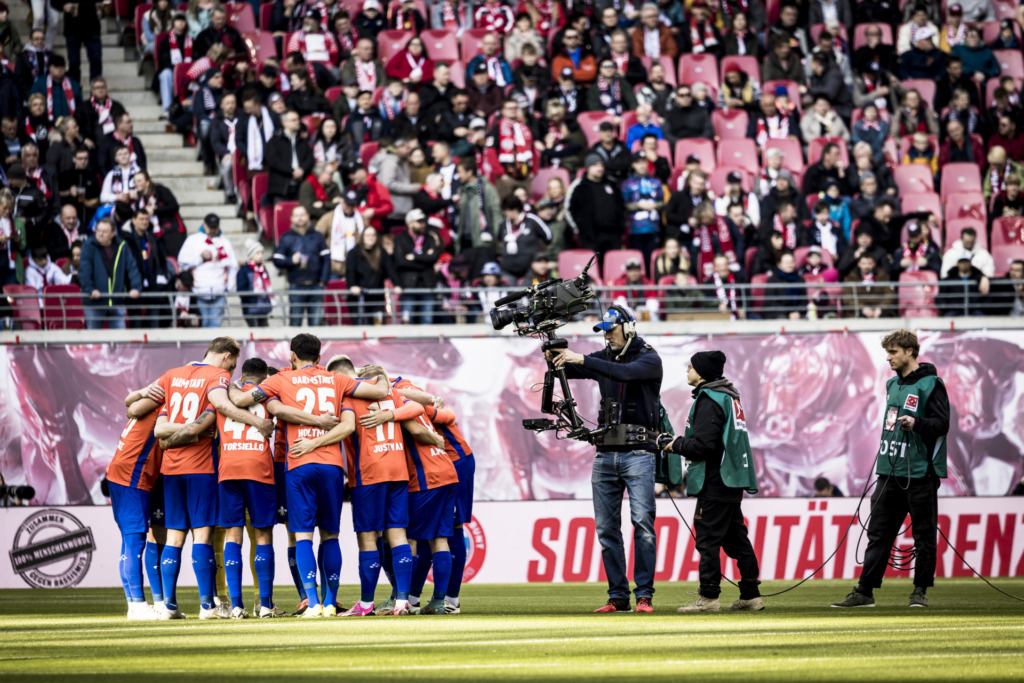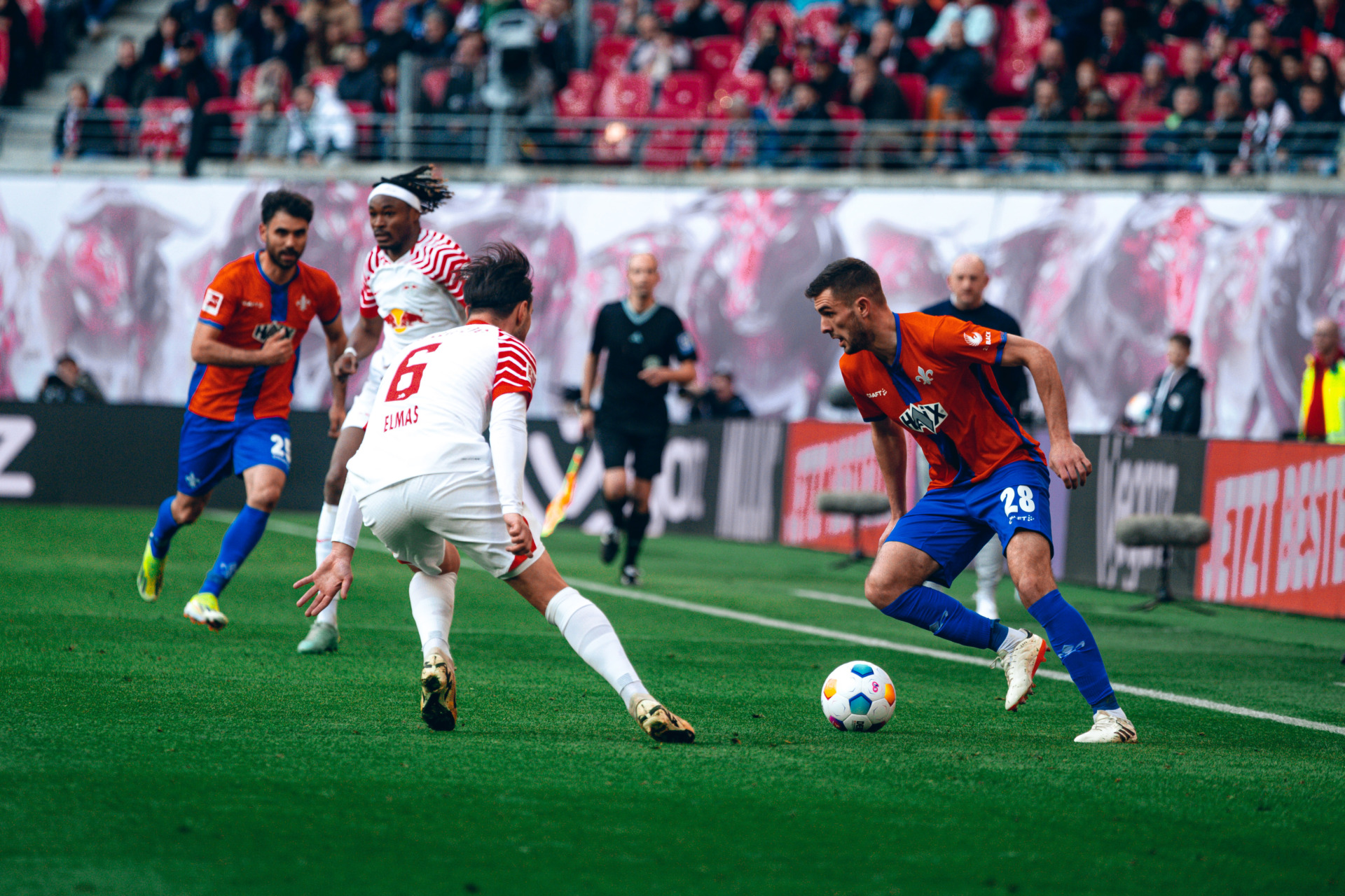 The home side continued to dominate in possession but with no real threats to goal. Indeed, it was Darmstadt who threatened next on 23 minutes as fine pass from Julian Justvan released Gerrit Holtmann, but ‚keeper Gulacsi directed the ball around the post.