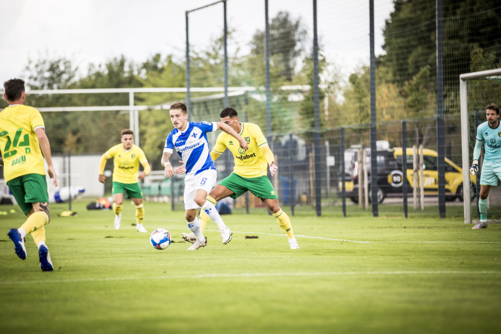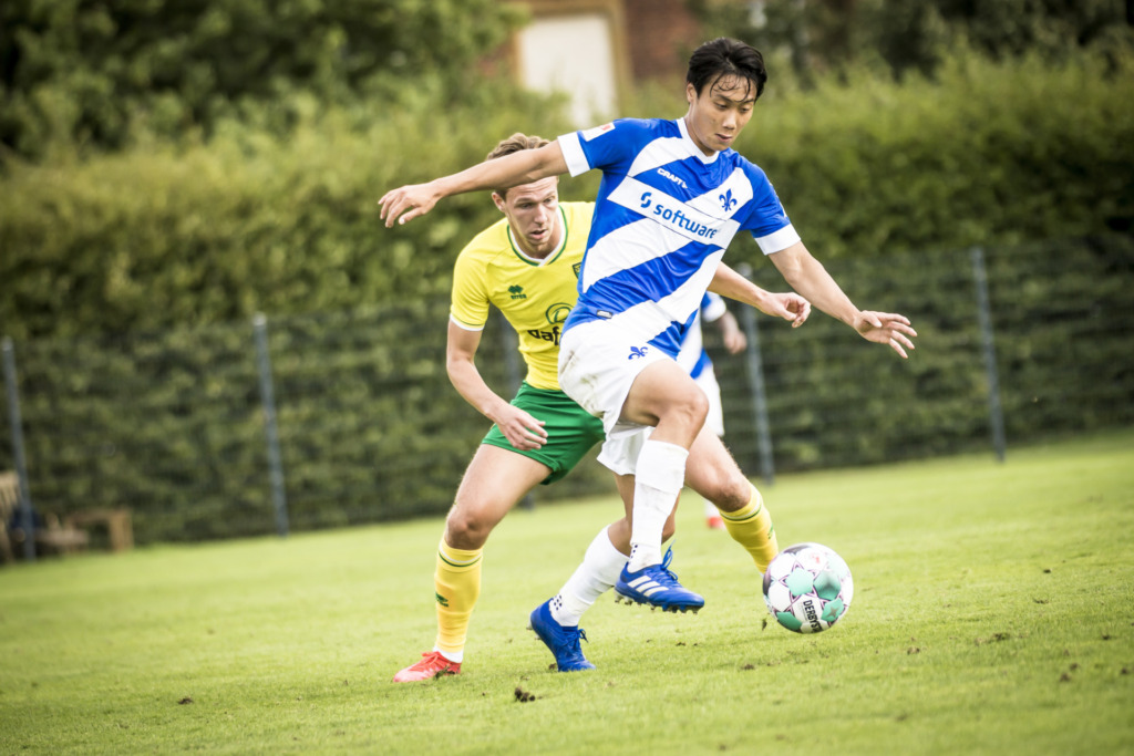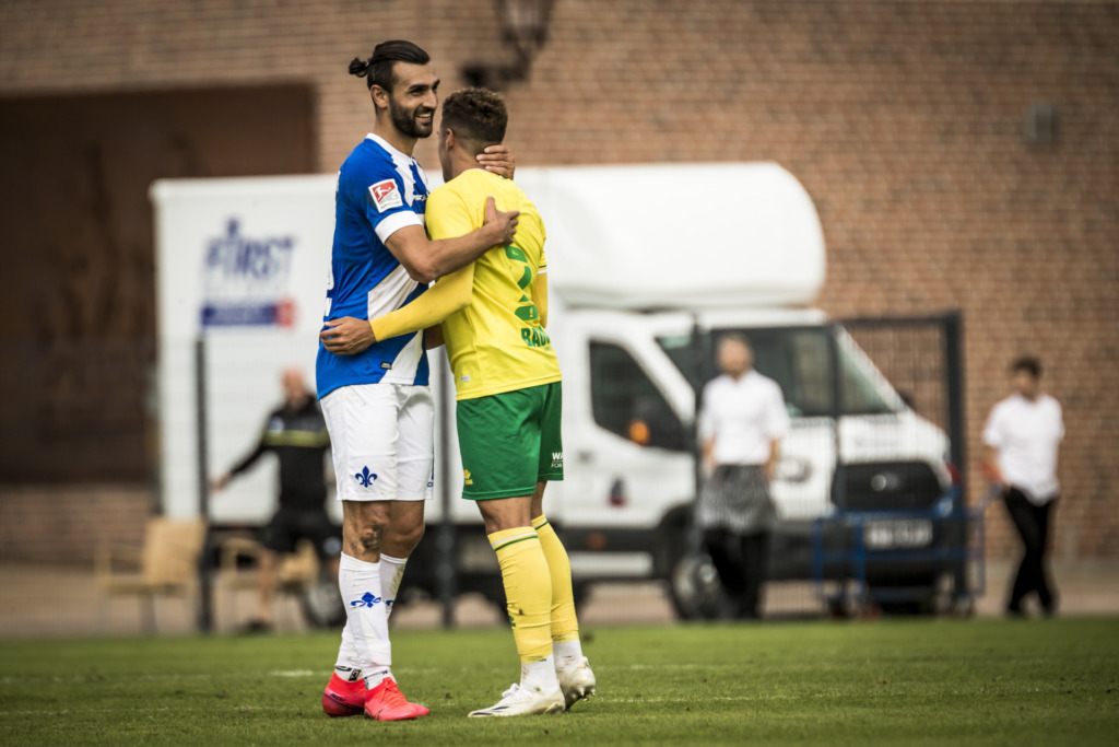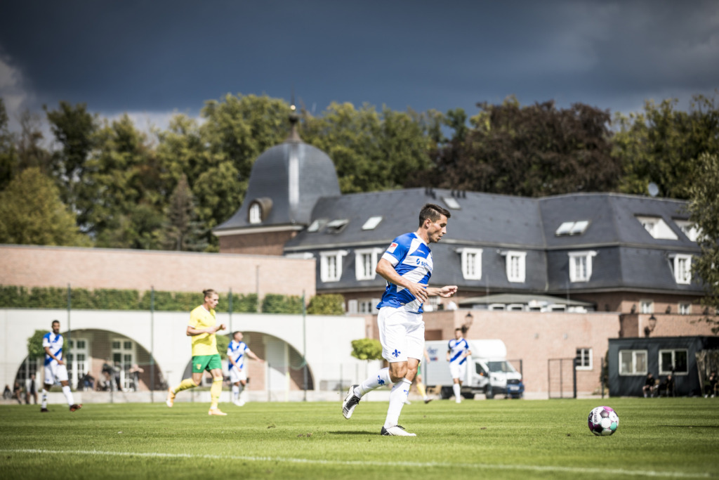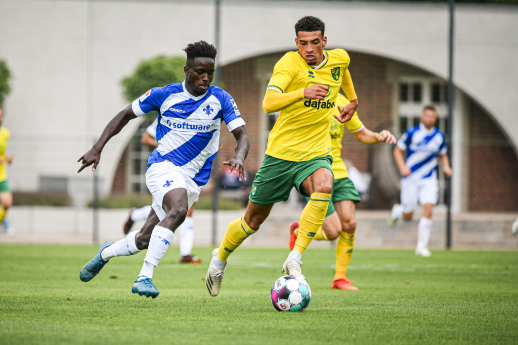 Marvin Mehlem, Fabian Schnellhardt und Braydon Manu, Tobias Kempe sowie Fabian Holland. Diese fünf Lilien standen vor drei Jahren auf dem Spielfeld als der SV Darmstadt 98 im Zuge der Sommervorbereitung auf die Saison 2020/21 schon einmal gegen Norwich City spielte. Gleich für zwei Testspiele reisten die Darmstädter vor drei Jahren nach Harsewinkel in Ostwestfalen, um auf der Sportanlage des Hotels Klosterforte gegen den damaligen Absteiger aus der Premier League zu testen. In zweimal 90 Minuten zeigten die Lilien zwei couragierte Auftritte. Während das erste Match zwar mit 2:3 verloren ging, erkämpfte sich im zweiten Duell eine mit zahlreichen U19-Akteuren gespickte südhessische Mannschaft ein 0:0. Die beiden Lilien-Treffer erzielte Serdar Dursun, Trainer des SV 98 war im Sommer 2020 noch Markus Anfang. Christoph Zimmermann stand übrigens in Harsewinkel bei der torlosen Partie auf dem Platz – damals allerdings noch im gelb-grünen Jersey.