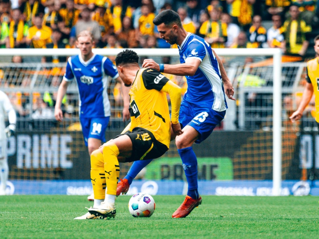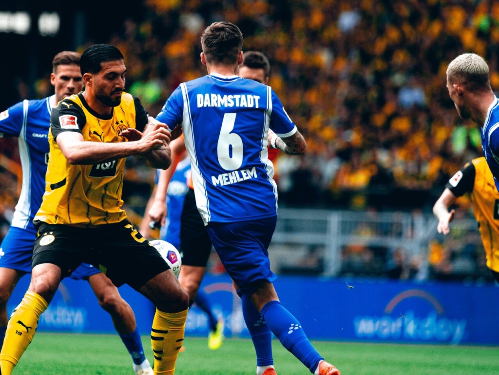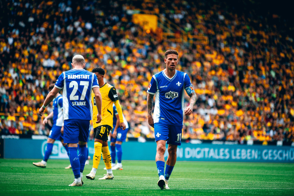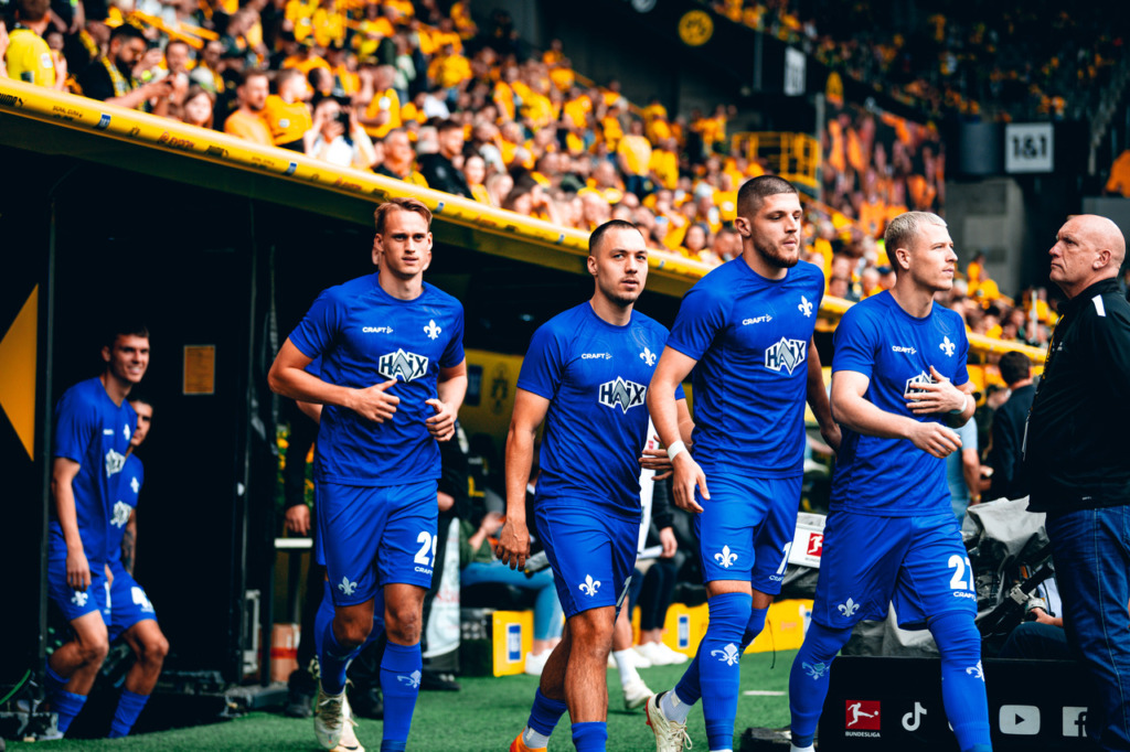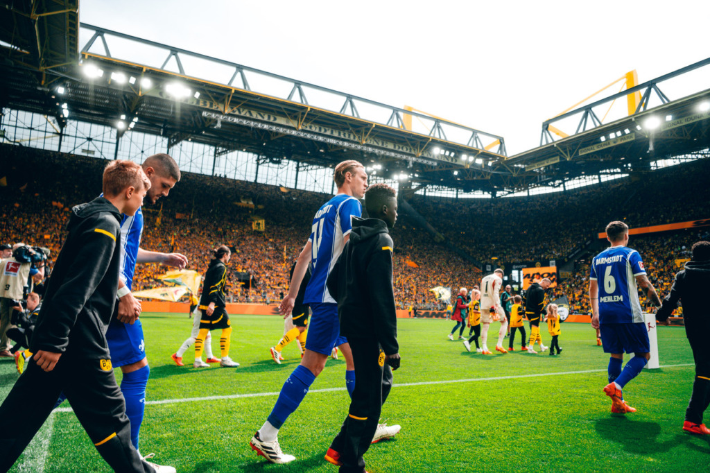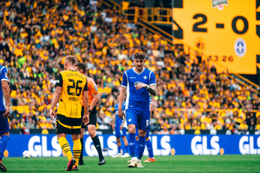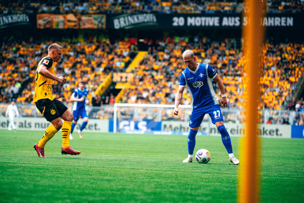 In the Lilies‘ last Bundesliga game at Borussia Dortmund for the time being, the guests were well in the game in the first few minutes and played courageously. However, it was was Marco Reus who had the first really noteworthy finish of the game in his last game for BVB: Sancho cut the ball back to Reus but he smashed it against the bar on 11 minutes. Six minutes later, the South Hessians also reported their presence in front of the opposing goal and Marvin Mehlem failed to hit the ball after a cross from Emir Karic – however, the flag had gone up for offside.
