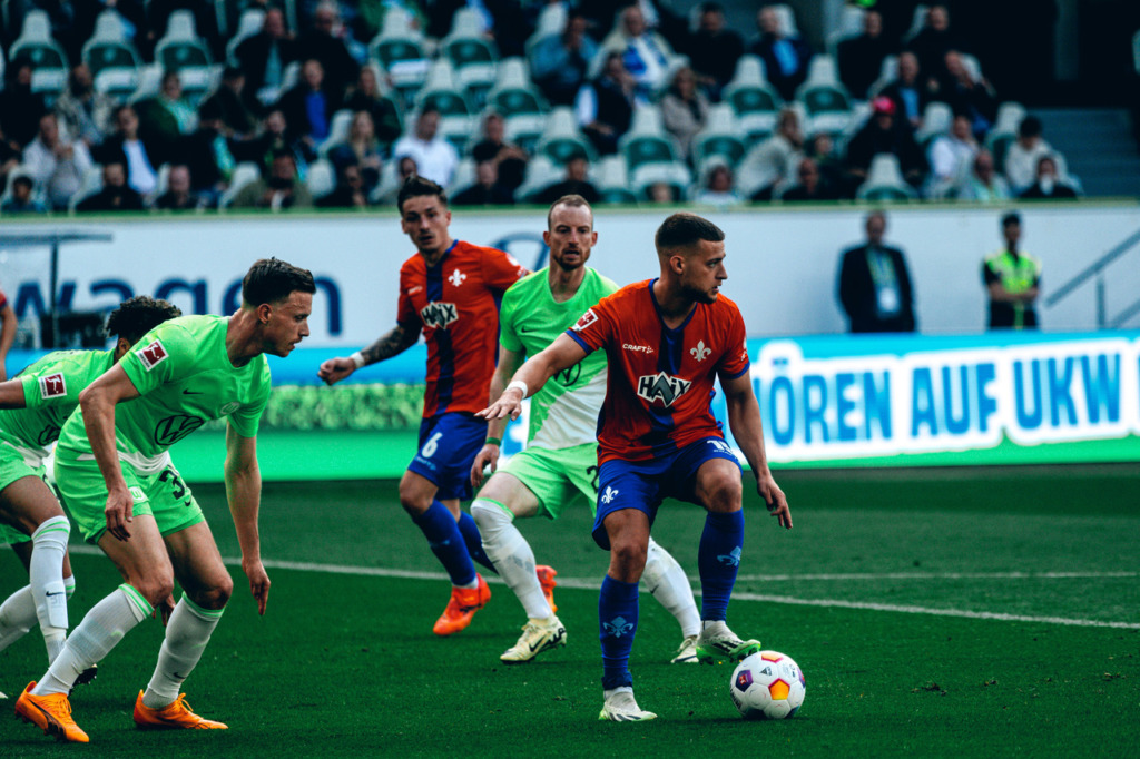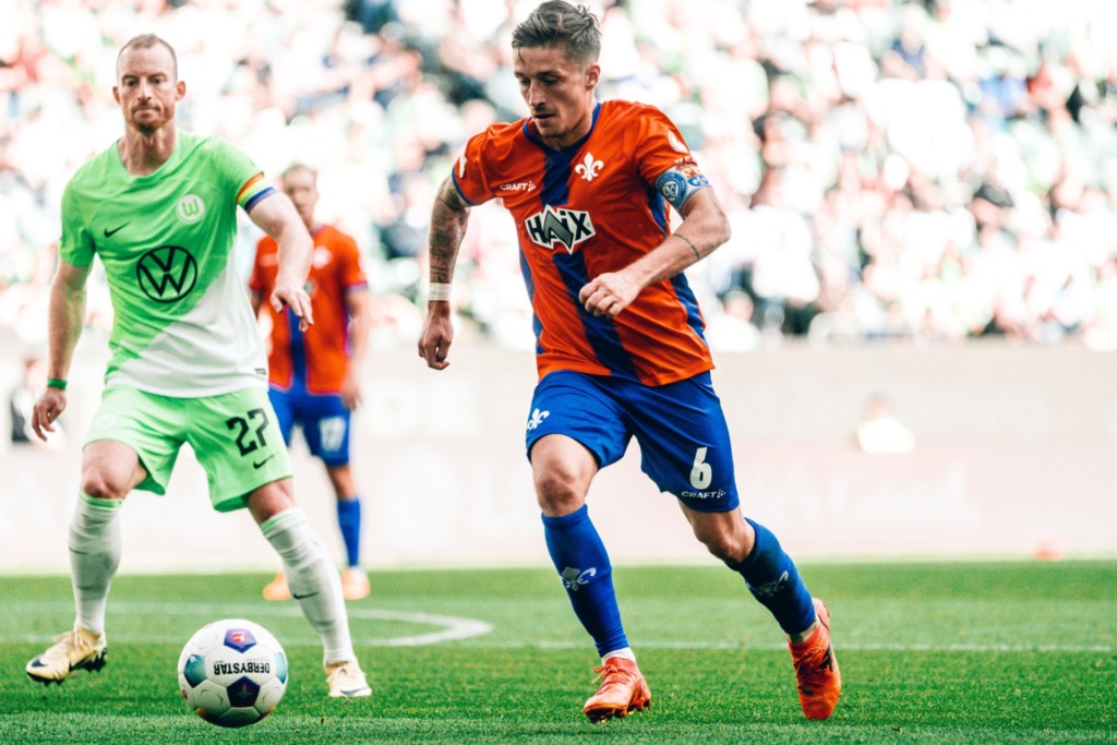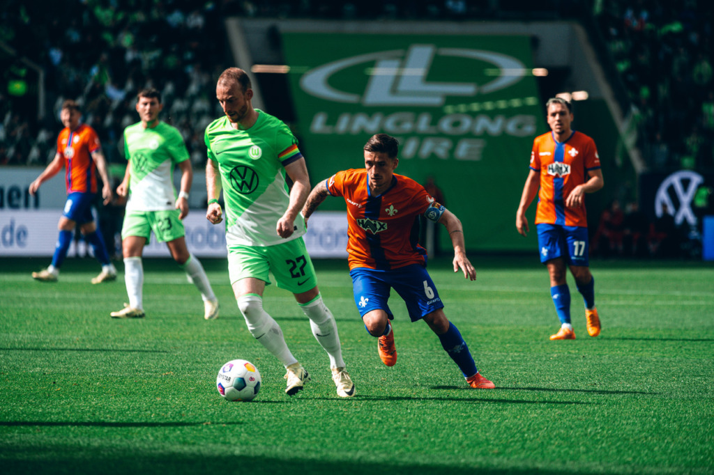 It was only two minutes before the break that Skarke had a chance after a pass from the returning Marvin Mehlem, he aimed for the far corner, but flicked the ball over the goal. Right on the whistle, Darmstadt had their next chance through Fabian Nürnberger who tried a free kick and forced Casteels into a brilliant save in the Wolfsburg goal. A little later, VfL went into the locker room with a well-deserved lead.