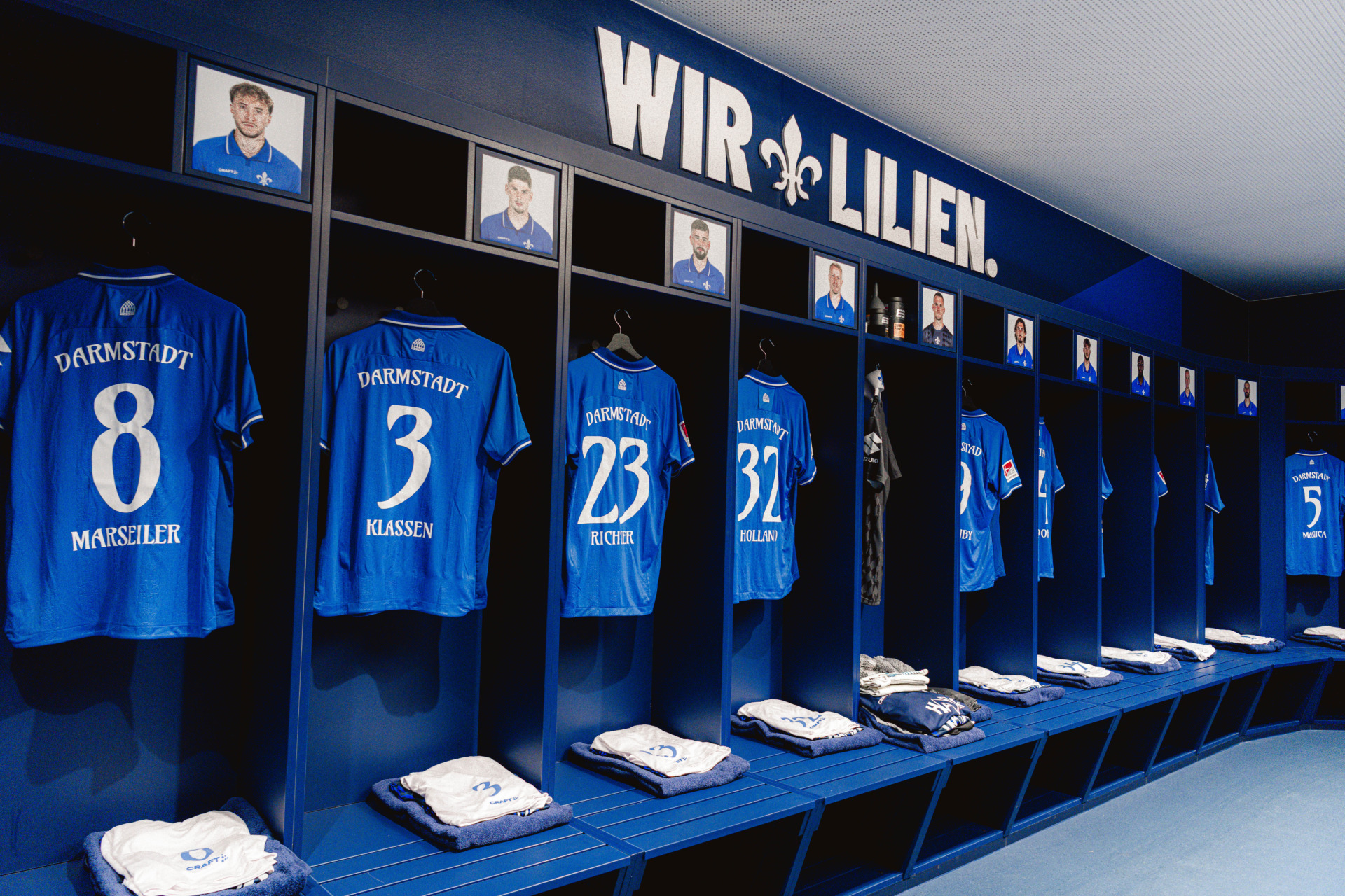 Heimkabine des SV Darmstadt 98 vor dem Heimspiel der Lilien gegen Hertha BSC