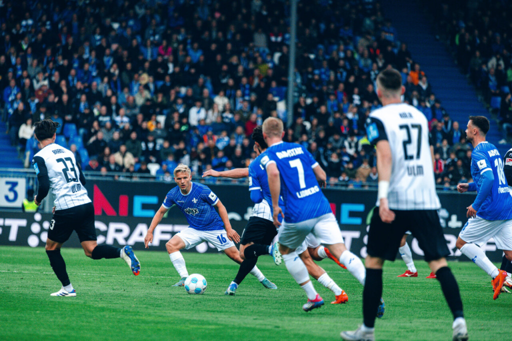 Even after the break, the Darmstadt team continued to have control of the game. The first chance went to the guests, but Marcel Schuhen narrowed the angle against Chessa and fended off the attempt, 5 minutes after the break. On the other hand, Philipp Förster prevailed strongly against his opponent and shot, Ulm’s keeper Thiede just steered the ball around the post on 57 minutes. Three minutes later the home team got another chance but Corredor couldn’t find the target on the hour mark.