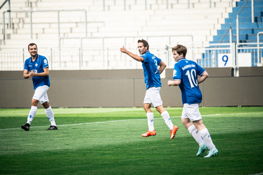 Einen kleinen Vorgeschmack, auf welche Highlights sich Vereinsmitglieder beim SV 98 freuen können, bekamen alle Fanfest-Besucher im Anschluss an die Einheit der Profis. Die ausgelosten Mitglieder traten in den Teams „Heimtrikot“ und „Auswärtstrikot“ gegeneinander an. Während sich die Spieler im Spielertunnel bereit machten, sorgte Alberto Colucci für Stimmung im Stadionrund. Selbstverständlich durfte auch die Lilien-Hymne nicht fehlen. Im Anschluss wurde das Mitgliederspiel mit großem Applaus angepfiffen. Mit einem 4:2 setzte sich schließlich das Heimtrikot-Team durch.