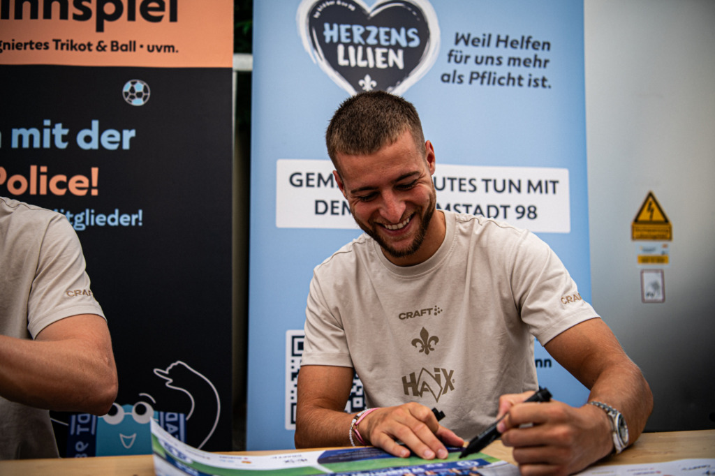 Zum Abschluss des ereignisreichen Tages mischten sich die Profis unter die Fans. Im gesamten Stadionumlauf standen sie in Zweierteams für Autogramme, Fotos und persönliche Gespräche zur Verfügung. Der eine oder andere Profi wagte sich dabei auch selbst an die Aktionsstände und sorgte für zusätzliche Begeisterung bei Groß und Klein. Gegen 21 Uhr endete die stimmungsvolle Einstimmung auf die kommende Saison.