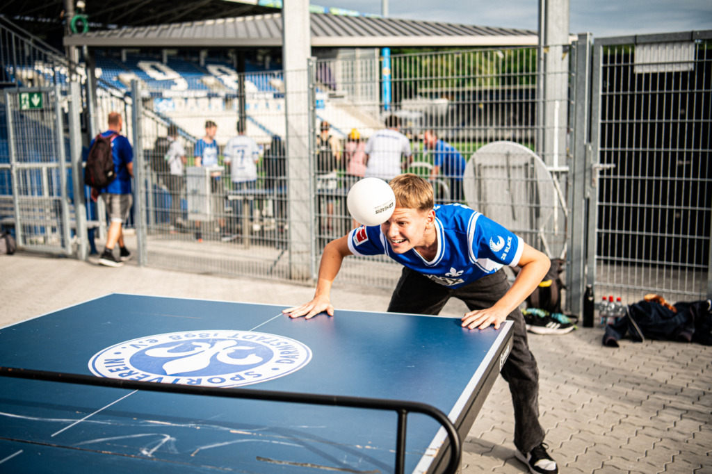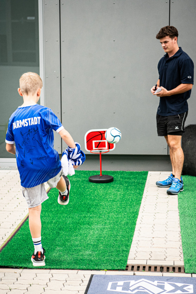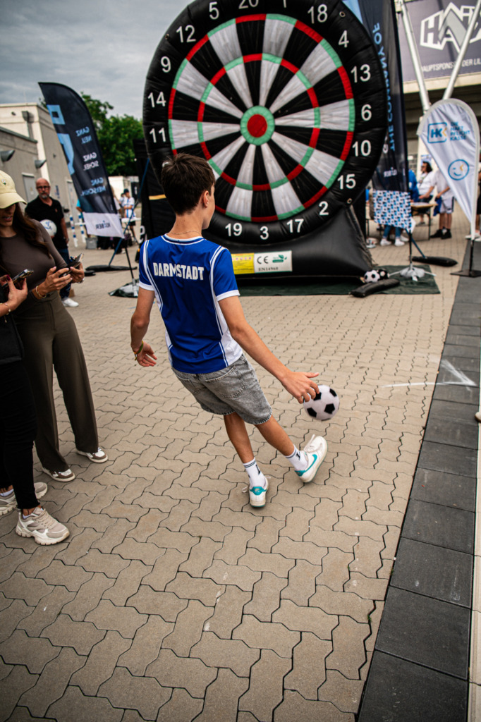 Auf dem Stadiongelände boten sich zahlreiche Möglichkeiten, selbst aktiv zu werden. Ob beim Krombacher-Kastenkick, beim Fußball-Minigolf von HAIX, der Torschussmessung der Fußball-ID-Mannschaft oder dem Human-Table-Soccer der Firma Merck konnte jeder sein Können unter Beweis stellen. Sportliches Geschick war auch an der Headis-Platte und beim Tischtennis gefragt, während beim eFootball spannende Duelle an der Konsole stattfanden. Auch die Judo-Abteilung begeisterte die Besucher mit Vorführungen und Übungen zum Selbst-Ausprobieren an der Matte.