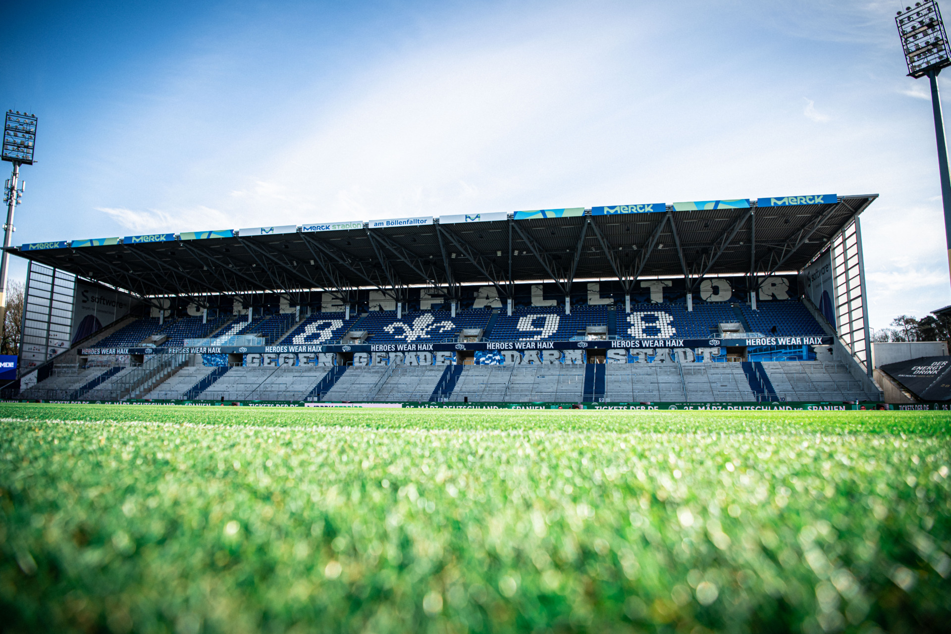 Merck-Stadion am Böllenfalltor bei Sonnenschein.