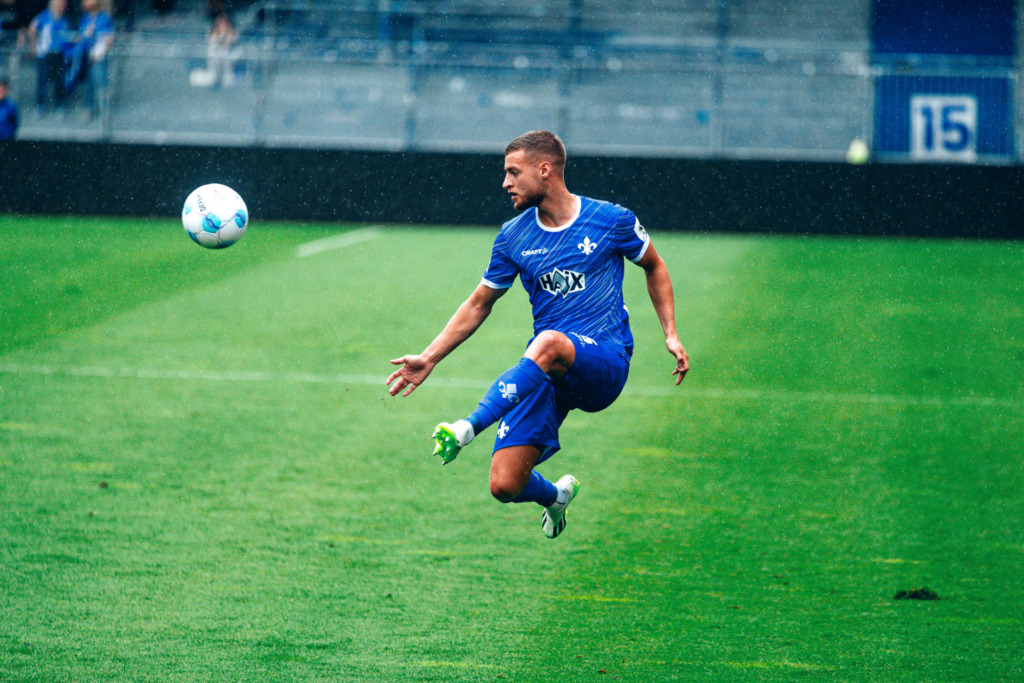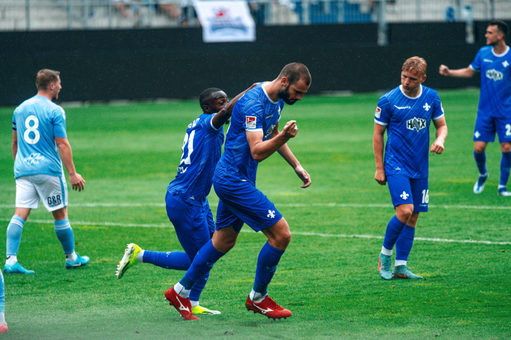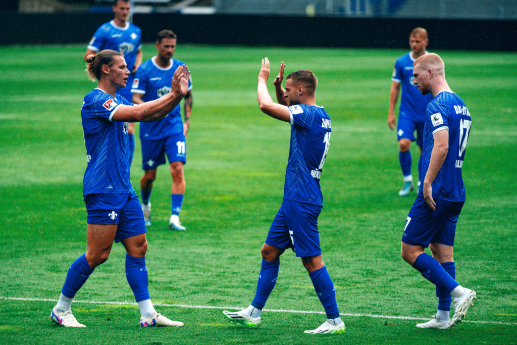 In the opening minutes, the guests had a little more possession of the ball, but the Lilies had the first chance: Vukotic headed a Marseiler corner towards the middle, where Hornby nodded the ball just over the goal (6th). Shortly afterwards, Eccles tried from distance, but the shot was off target (7′). As a result, the South Hessians had further promising opportunities through Vilhelmsson in the 14th and 16th minutes, but were unable to capitalise on them.
