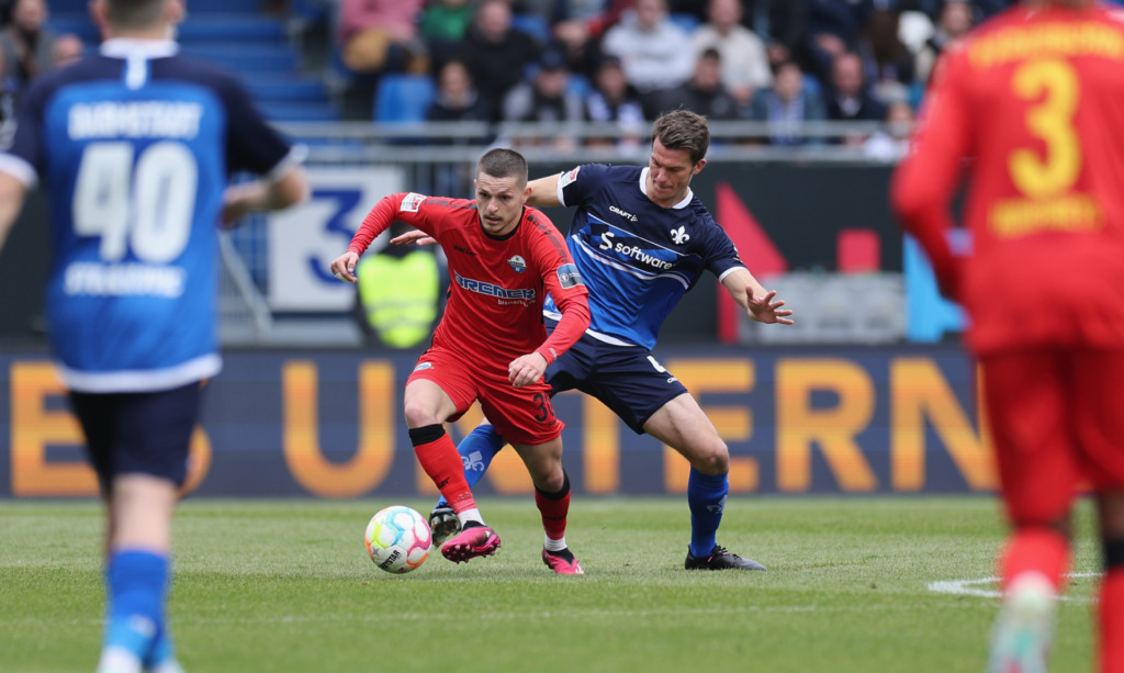 Die Lilien begannen das Heimspiel gegen den SC Padeborn mit viel Druck und versuchten bereits in den ersten Minuten, die Partie an sich zu reißen. Die Gäste hingegen probierten es mit der Maxime „In der Ruhe liegt die Kraft“, um so den Darmstädter Schwung abzufedern. Nach etwas mehr als zehn Minuten erspielte sich der SVD folgerichtig die erste gute Gelegenheit: Nach einem Steilpass von Emir Karic tauchte Filip Stojilkovic am Strafraum auf, ließ sich aber etwas zu weit nach außen drängen und sein Schuss rollte am zweiten Pfosten vorbei (13.). Auf der Gegenseite kamen auch die Gäste zum ersten Abschluss, doch der Versuch von Conteh war kein Problem für Marcel Schuhen (14.).