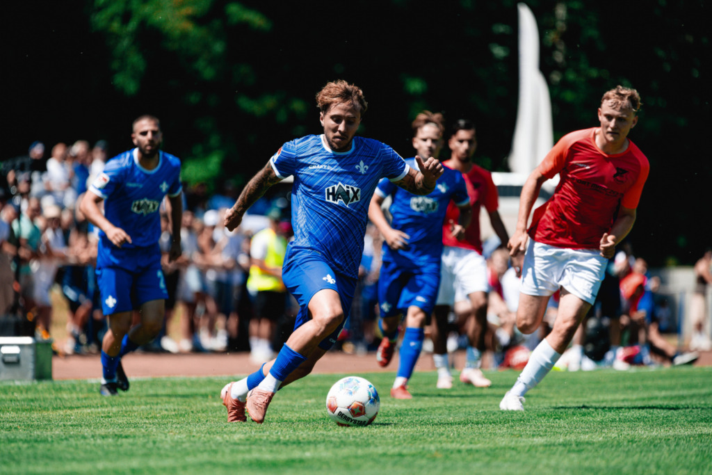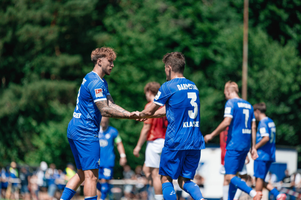 Die Lilien zeigten sich von Beginn an torhungrig und führten bereits nach 34 Minuten mit 7:0. Neuzugang Semih Güler eröffnete das Torfestival früh durch einen präzisen Distanzschuss (2.) und traf in der 21. Minute erneut. Auch Luca Marseiler (12., 30.) schnürte einen Doppelpack. Ein Eigentor der Gastgeber (31.), Isac Lidberg (33.) sowie ein Treffer von Neu-Lilie Leon Klassen (34.) sorgten für weitere Tore der Südhessen. Auch kurz vor der Pause bleiben die Lilien effektiv: Lidberg verwandelte einen Foulelfmeter sicher zum 8:0 in der 40. Minute und staubte kurz vor der Pause nach einer Ecke zum 9:0-Halbzeitstand ab (45.).
