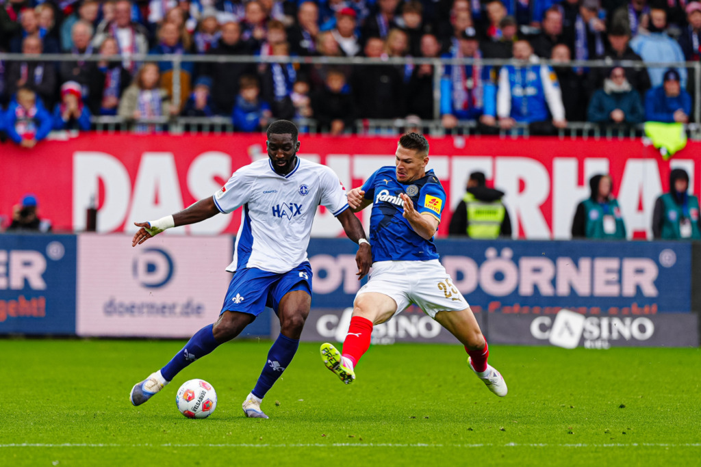 The point won. „Darmstadt 98’s winning streak snapped in Kiel,“ read a media headline after the final whistle of the match in the far north. The content was certainly correct, after the Lilies had previously clinched three consecutive victories. And yet, at this point, we’d rather stick with the headline from the Darmstädter Echo: „Darmstadt 98 players happy with the point in Kiel.“ Kiel put in a truly strong performance; in fact, a draw against an ambitious Bundesliga relegated team is usually a rather positive outcome. „Kiel was the strongest team we’ve played against so far this season,“ Kohfeldt summed up. No one wanted to contradict him on this Saturday afternoon. „It’s a good point for us because Kiel is a very good team,“ Aleksandar Vukotic summed it up: „Four unbeaten games feels good. We’re happy about that.“
