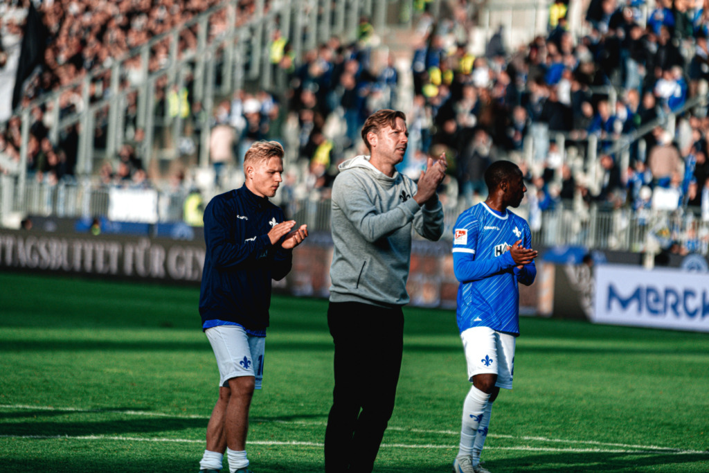 The renewed interaction between fans and team. Something that has been cemented ever since the away appearance in Karlsruhe and the convincing home win against Köln in a special Bölle atmosphere. This is also a reason why SV Darmstadt 98 has been unbeaten for three league games in a row. The duel against the second division newcomer from Ulm was a complicated game, and not just for the blue and white protagonists on the pitch. The Darmstadt masses in the stands also had to remain patient while SV 98 tried to find the hardly any space available against a compact opponent. And yet, at least at times, they once again turned the Merck Stadium at Böllenfalltor into a “cauldron,” as even Ulm coach Thomas Wörle said. The Lilies fans from all corners of the stadium repeatedly pushed their team forward. “Everyone was there until the last seconds and everyone was behind us,” praised Kohfeldt and added, confident of victory: “I am sure that we will pull such games together in our direction in the future.”
