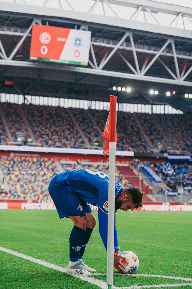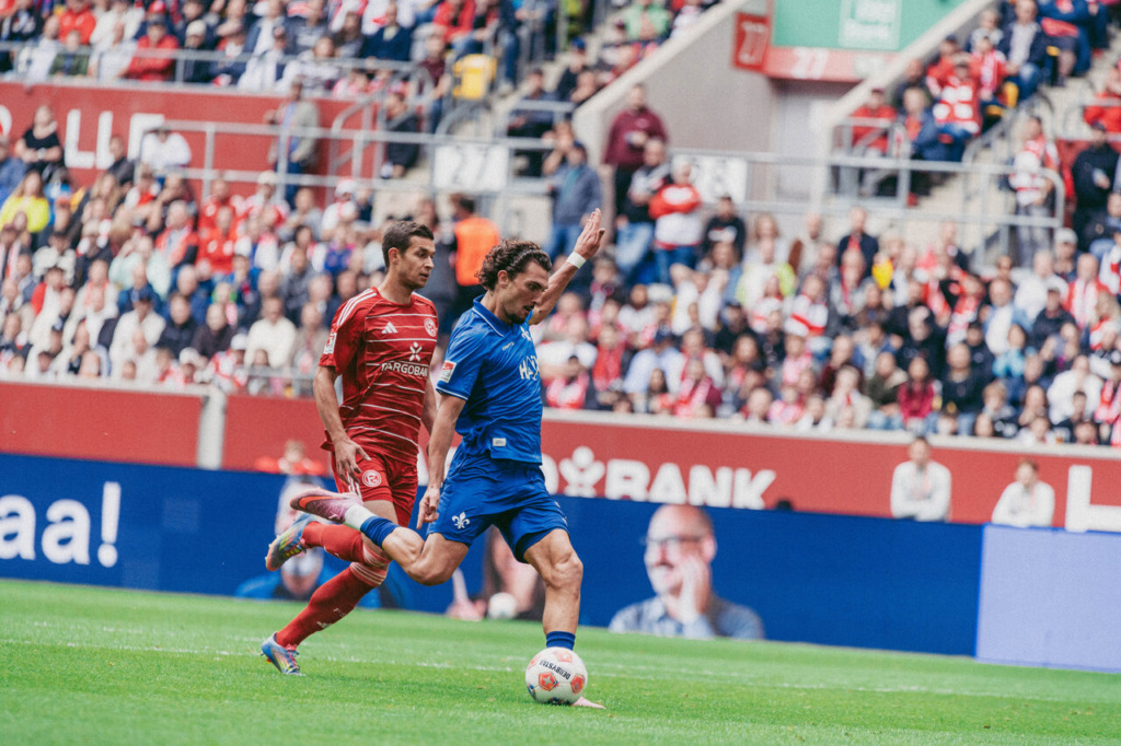 The Lilies got off to a better start in Düsseldorf and made an early statement: After just seven minutes, Fraser Hornby found himself unmarked in front of Kastenmeier after a long clearance from Marcel Schuhen, but the Fortuna keeper made a brilliant save with his foot. The resulting corner brought the next dangerous moment: Kastenmeier misjudged the situation, Hornby headed the ball back across, and Isac Lidberg headed the ball over the line. Darmstadt’s celebrations were short-lived, however, as the Swede was seemingly offside by a whisker – VAR disallowed the goal on 8 minutes.