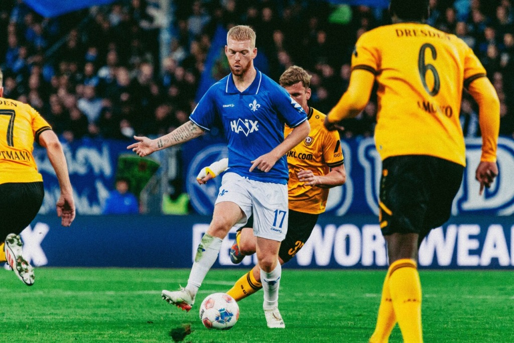 The first good opportunity belonged to the home side: Leon Klassen, a first-time starter in the starting eleven, sent Fraser Hornby on his way with a long ball, but his direct shot sailed over the goal on 22 minutes. After that, Darmstadt increasingly took control of the game, repeatedly approaching the visitors‘ goal without posing any real threat. Until the 37th minute, it was Isac Lidberg again who was on the spot. Marco Richter won the ball and played it perfectly into the path of the Swede, who remained ice-cold in the penalty area despite being under pressure to score the 1-0 for SVD.