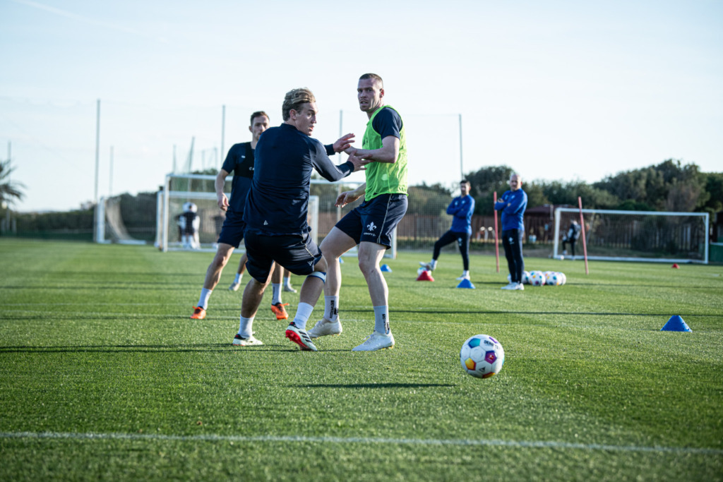 „Es ist eine knackige Vorbereitung, weil uns nicht viel Zeit bis zum ersten Spiel bleibt. Da ist es klar, dass wir alle von Beginn an Vollgas geben und die Einheiten entsprechend fordernd sind. Schließlich wollen wir bestmöglich vorbereitet in das Spiel gegen den BVB gehen“, so Christoph Klarer angesichts der bisherigen Trainingstage in Spanien. Inhaltlich standen am Vormittag verschiedene taktische und spielnahe Abläufe auf dem Programm, zudem Flankensituationen und Abschlüsse. Am Nachmittag hieß es dann Standards, Standards, Standards. Ob Freistöße oder Eckbälle, der ruhende Ball war das bestimmende Thema zum sportlichen Abschluss des Freitags.