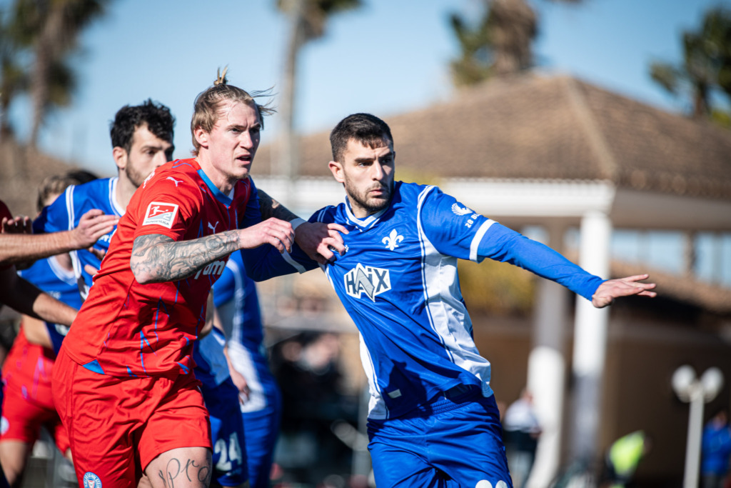 „Wir wollen nicht zu nett oder zu naiv sein. Es geht darum, in den Zweikämpfen den Schritt näher dran zu sein. Den Gegner spüren zu lassen, dass jemand da ist, ohne dabei die Grenzen des Erlaubten zu überschreiten“, sagte Christoph Zimmermann in einer Medienrunde am Mittwoch (3.1.) unter der spanischen Mittagssonne. Ekliger sein, noch galliger sein. Das ist die Marschroute der Lilien für die verbleibenden 18 Bundesliga-Spieltage. „Im Training müssen wir daher schauen, dass wir in der kompletten Einheit und in jeder Übungsform diese Giftigkeit drin haben“, betonte der Innenverteidiger des SV Darmstadt 98.