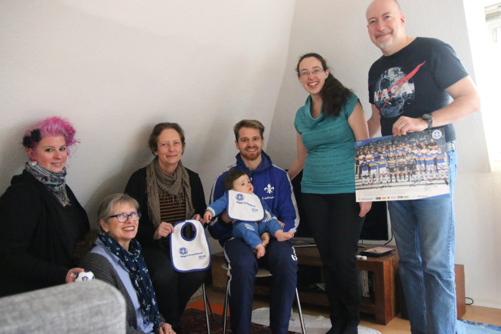 Familie Dorn/Dorn-Rochée ist eine von zahlreichen Darmstädter Familien, die standesgemäß begrüßt werden. Insgesamt sieben sozialpädagogische Fachkräfte besuchen alle Familien in Darmstadt, die ein Baby bekommen haben. Sie stehen den Eltern mit Rat und Tat zur Seite, informieren über Fördermöglichkeiten, bieten schnelle Hilfe bei Problemen und heißen die kleinen Heinerinnen und Heiner in Darmstadt willkommen. „Aktuell haben wir etwa 1800 Familien, die jährlich besucht werden. Die neuen Lätzchen sind ein tolles Willkommensgeschenk des SV Darmstadt 98 für die Familien. Mit unserer kostenlosen Hilfe können wir die Familien gut unterstützen und beraten, sei es bei alltäglichen Fragen oder der wirtschaftlichen Unterstützung“, sagt Regina Stadtmüller, Koordinatorin des Darmstädter Modells.