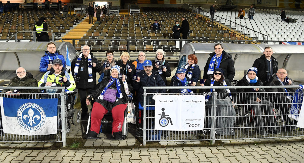 Der SV Darmstadt 98 ermöglicht es im Zeichen der Inklusion den Rollstuhlfahrern, barrierefrei die Spiele der Lilien zu besuchen. Und das wird besonders gut angenommen: Vor allem fällt auf, dass sich Menschen mit Einschränkungen nicht mehr Zuhause einschließen, sondern sich immer mehr in die Öffentlichkeit wagen und soziale Kontakte suchen. Erfreulicher Weise steigt die Zuwachsrate der Besuche von Behinderten gerade im Merck-Stadion am Böllenfalltor jährlich an. Zudem hat der SV 98 mit einem Eintrittspreis von nur 5,00 € pro Tagesticket inklusive einer Begleitperson die günstigsten Preise im deutschen Profifußball.