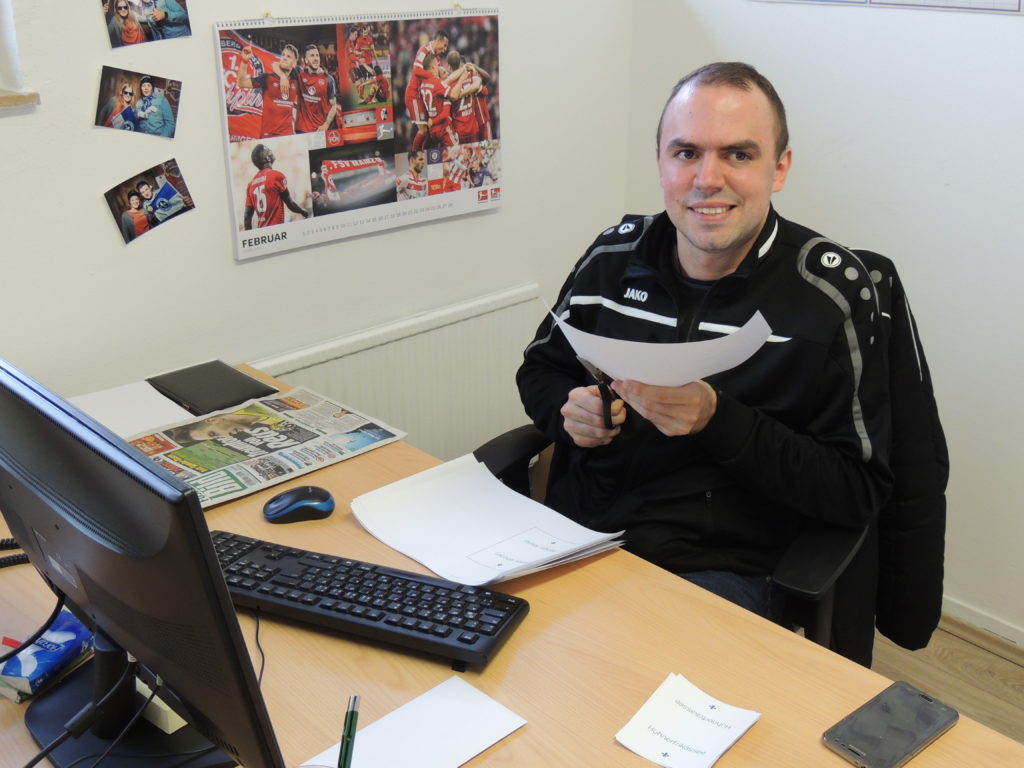 Nico ist fest in das Lilien-Team integriert und fühlt sich in seinem blau-weißen Arbeitsumfeld sichtlich wohl.