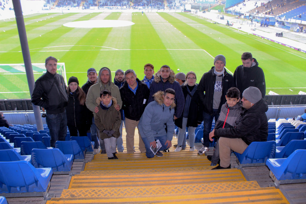 Die Fanszene der Lilien setzte sich dafür ein, dass die Teilnehmer ein Fußballerlebnis bekamen, das es in sich hatte: Die Lilien-Fans begrüßten die Mannschaft des Integrationskicks, die mittlerweile auch ehrenamtlich für die TG Bessungen tätig ist, herzlich und leiteten den Spieltag mit einer Stadionführung ein. Für zahlreiche Fragen stand die Fanszene des SV 98 ebenfalls Rede & Antwort und nahm das Team anschließend mit auf die Südtribüne, um gemeinsam das Spiel zu schauen. Ein gelungener Tag: mit Fußball, Fahnenschwenken und dem Zelebrieren von Fangesängen.